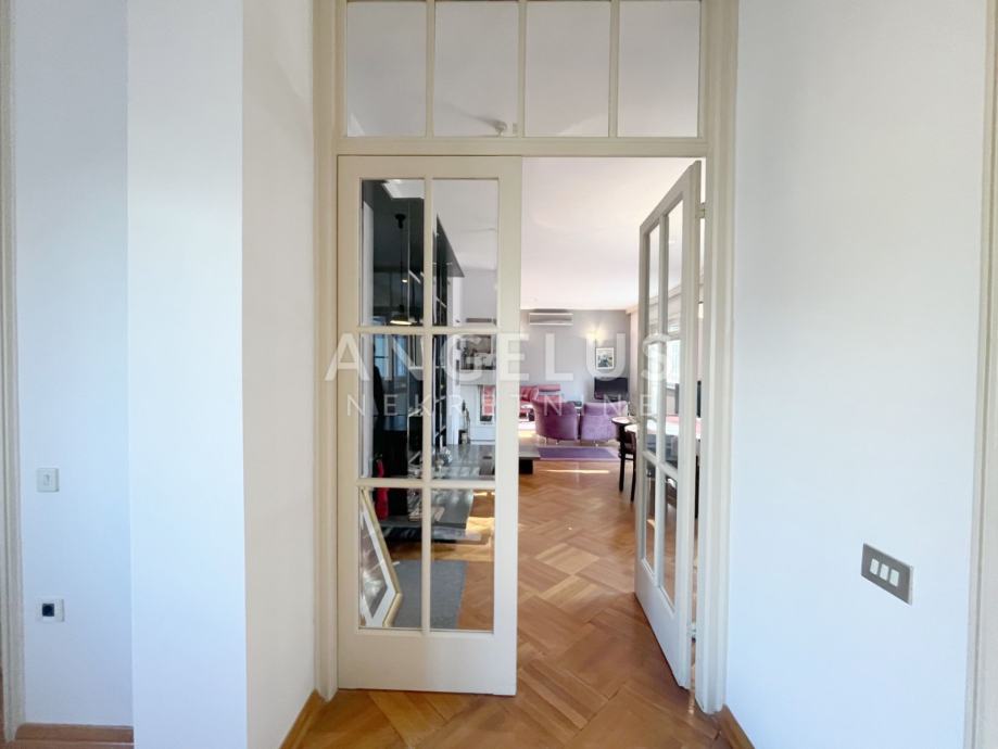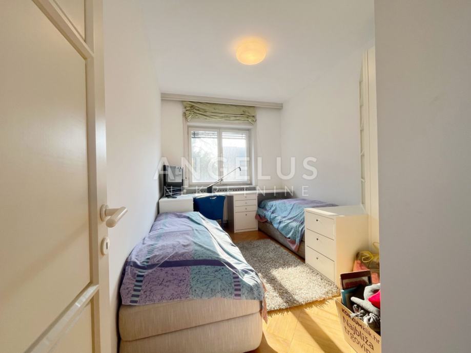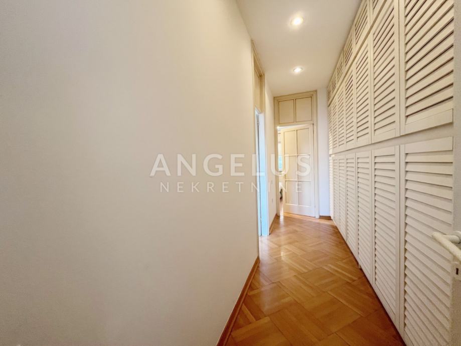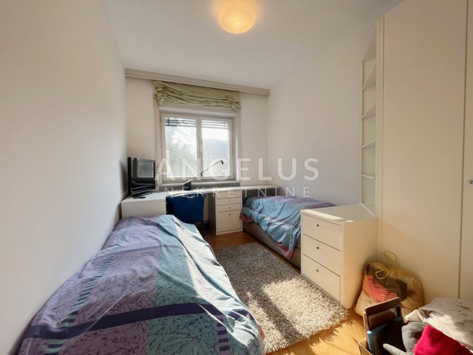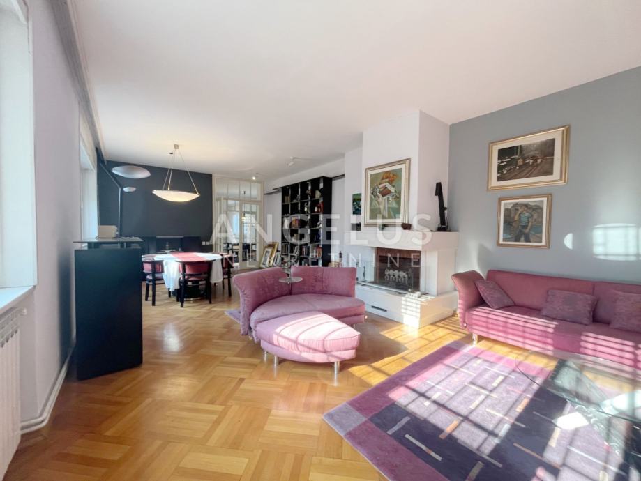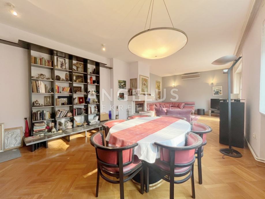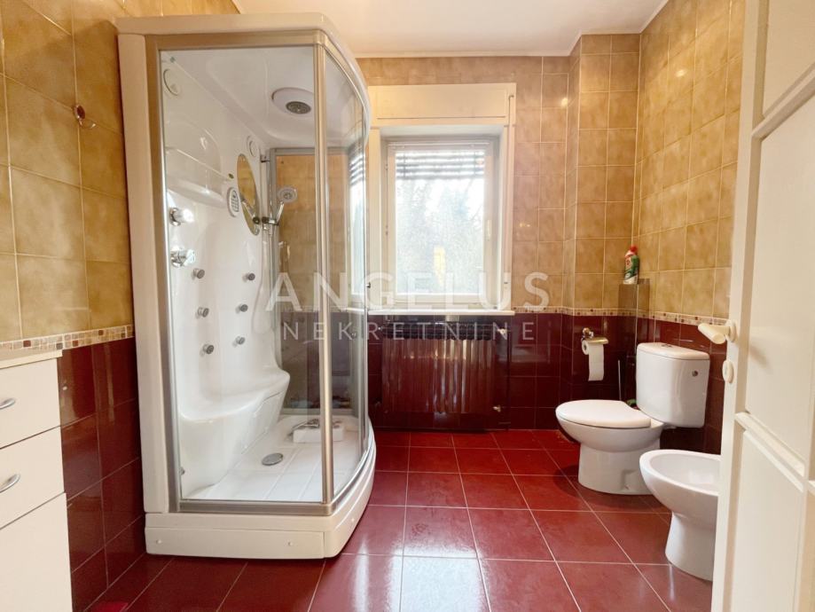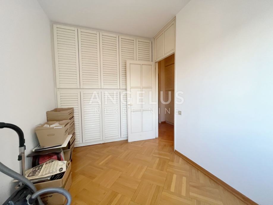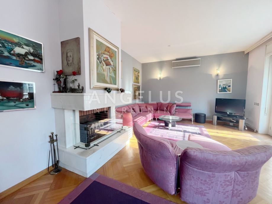 Namješteni stan nalazi se na 4.katu zgrade sa liftom, a sastoji se od ulaznog hodnika, 3 spavaće sobe, kupaonice, toaleta, kuhinje, blagovaonice i velike dnevne sobe sa otvorenim kaminom i sa izlazom na terasu. Plinsko centralno grijanje, klimatizirano.