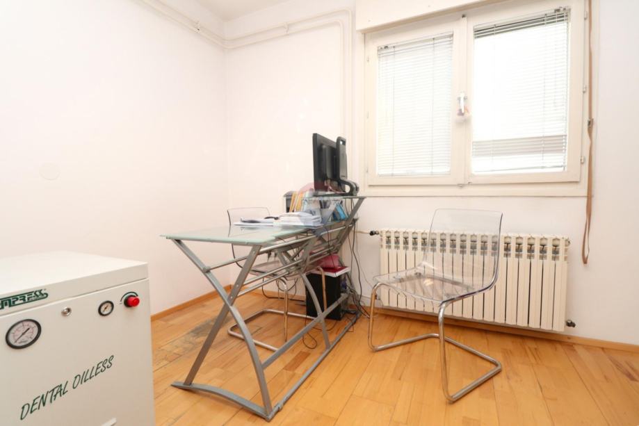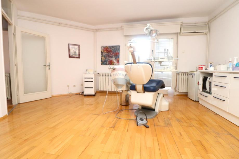 Iznajmljuje se opremljena stomatološka ordinacija. Nalazi se prvom katu uredne zgrade s liftom. Sastoji se od predsoblja, čekaonice, ordinacije, ureda, toaleta za pacijente, kupaonice za osoblje i dva balkona. Ugrađen je klima uređaj, grijanje je etažno plinsko.