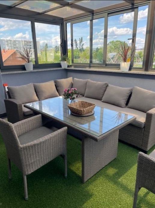 Na prodaju je odličan obiteljski stan u Ljubijskoj ulici u Dubravi. Nekretnina pruža opuštenost, mir, udobnost i komfor doma a pozicija iste je takva da ima prelijep pogled na okruženje gradskih ulica i zelenih površina u gradskoj četvrti gdje se nalazi. Stan je suvremeno opremljena komplet opremom: namještaj komplet, posteljina komplet, elektro uređaji komplet (usisavač, veš mašina, električnim i plinskim kuhalom, pećnicom, perilica suđa, sušilo za kosu, toster, mikrovalna pećnica, elektro kuhalo za kavu) komplet posuđe, televizor-smart tv, internet - WI FI. Podizanje roleta je elektromotorom. Na raspolaganju je kako zatvoreno garažno mjesto koje se zatvara daljinskim uređajem, tako i zelena površina u dvorištu. Stan ima spavaću sobu s bračnim krevetom, ormarom i tv a iz koje se izlazi na terasu-lođu s koje se pruža pogled na zalazak sunca i gradsku četvrt. U drugoj sobi se nalazi krevet s radnim stolom i ormarom.U dnevnom boravku se nalazi ugaona garnitura na razvlačenje (za dvije osobe), tv, stol za šest osoba, a u kuhinjskom dijelu se nalazi komplet ugradbena kuhinja s komplet kuhinjskom opremom. Iz dnevnog boravka se izlazi u zimski vrt u kojem se nalazi vrtna ugaona garnitura za sjedenje a u kojem udobnost i zadovoljstvo boravka, posebice uz jutarnju kavu ili čaj čini okruženje flore - raslinja ali i obilje prirodne dnevne svjetlosti. Zimski vrt koji je natkriven, ograđen i zaštićen od padalina ima lijep pogled na okruženje.Udaljenost od tramvajske stanice cca 8-10 min. Tramvajske linije vode prema Trgu Josipa bana Jelačića, autobusnom i željezničkom kolodvoru. Stan se nalazi u blizini bolnice Dubrava (15 min lagane šetnje), parka Maksimir (dvije tramvajske stanice), u blizini je Dom zdravlja, Garden Mall, pošta ,plac, drugi trgovački centri te ugostitelji objekti.Komplet nekretnina je na sunčanoj strani.U stanu se nalazi klima uređaj. Stan ima portafon s video nadzorom ulaza u objekt.