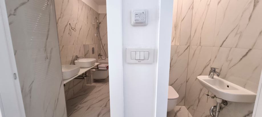 Stan je opremljen visokokvalitetnim uređajima, te su jednako tako korišteni materijali visoke kvalitete i najviših standarda. Hrastov brušen parket 1 klase, protuprovalna vrata, magnetne brave, klima uređaji, kondenzacijski bojler…