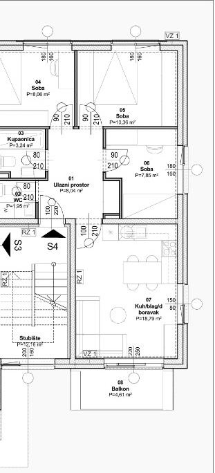 Zagreb, Dubrava, četverosoban stan NKP 74,84 m2 u prizemlju luksuzne zgrade oznake P2 u izgradnji.Stan oznake S4 sastoji se od ulaznog hodnika, dnevnog boravaka s blagovaonicom i kuhinjom, tri spavaće sobe, kupaonice, zasebnog wc-a te balkona. Zatvorene površine 73,92 m2 te ukupne površine...