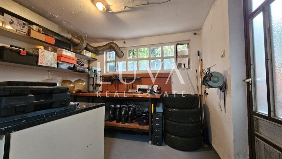 Podrum: četiri prostorije + kupaonica, dvije prostorije korištene su kao spremište dok je jedna prenamijenjena u mali poslovni prostor, a jedna je u funkciji radionice.