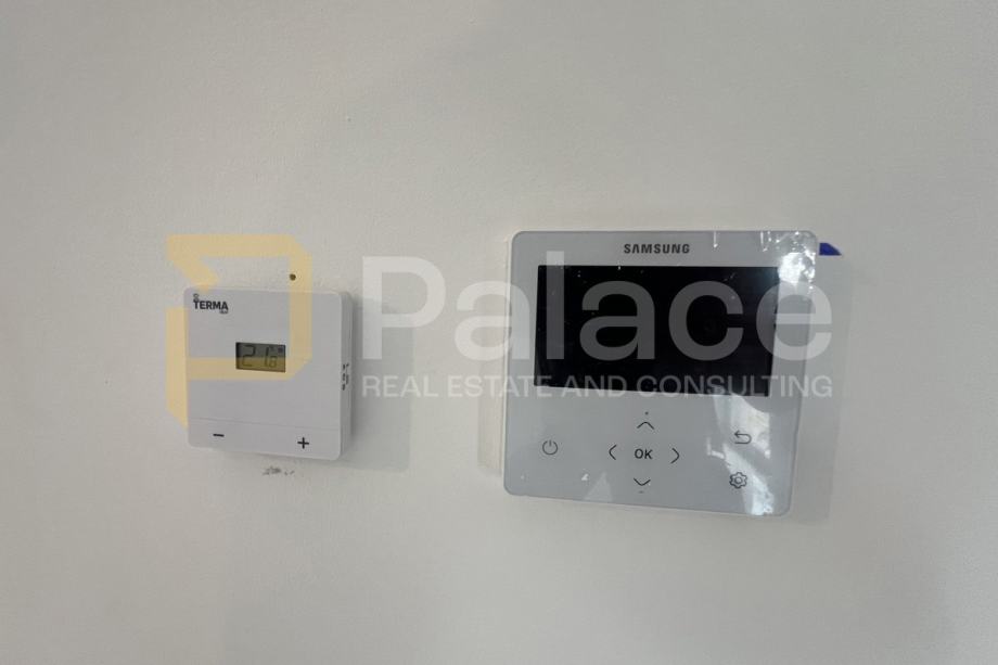 Krovna tersa je 50 m2 s ugrađenim pergolama i priključcima za bazen i jacuzzi. Pregrade od pjeskarenog stakla omogućavaju uživanje i odmor skriven od neželjenih pogleda susjeda.