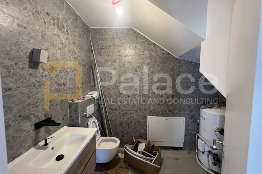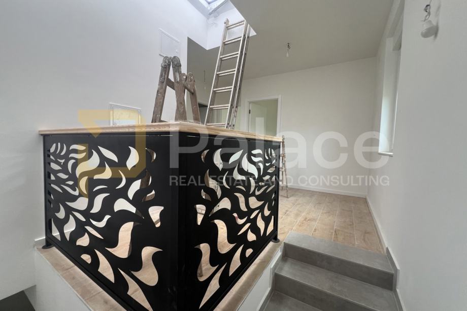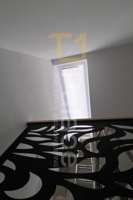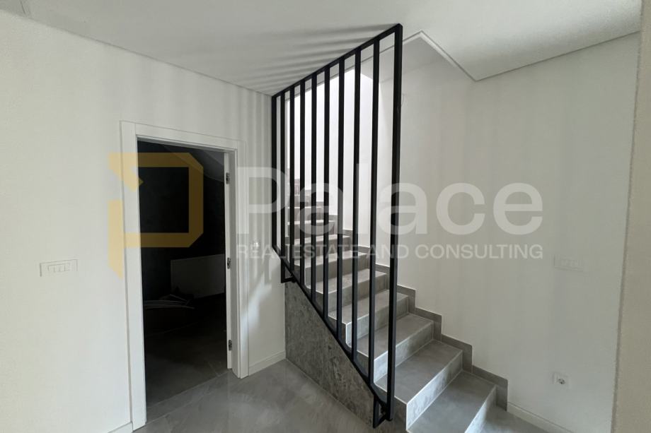 Na prvom katu nalaze se tri spavaće sobe s walk - in ormarima i izlaz na balkon koji se prostire preko cijelog stana.