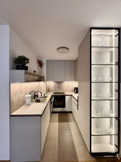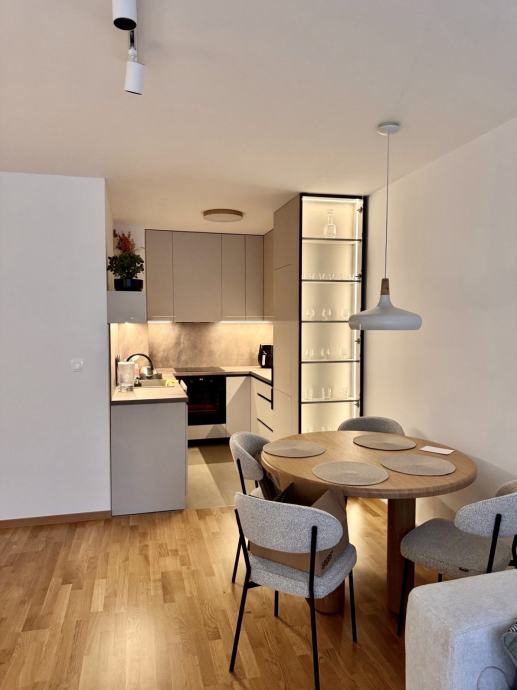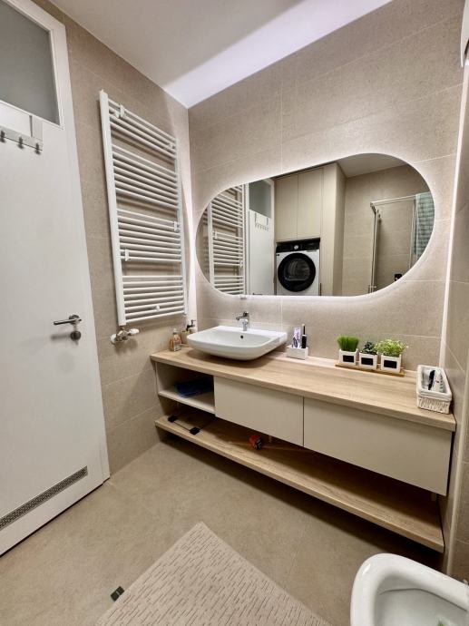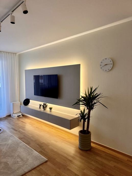 Stan je opremljen LED rasvjetom u svakoj prostoriji kojom se upravlja daljinskim upravljačem, dok je sav namještaj izrađen po mjeri, čime je postignut maksimalan komfor i moderan dizajn.