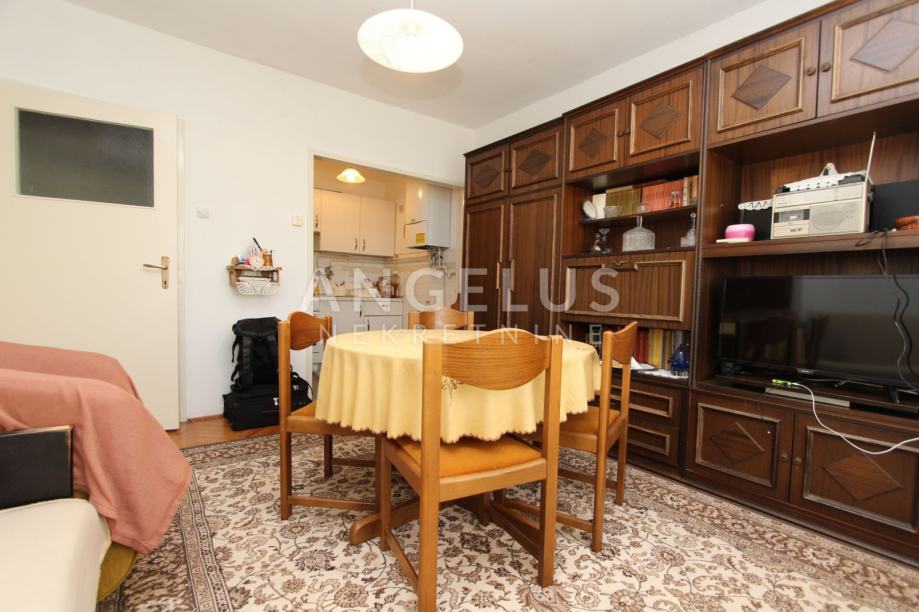 Namješteni stan površine 37 m2, nalazi se na 4. katu zgrade bez lifta. Sastoji se od ulaznog prostora, spavaće sobe, dnevne sobe povezane sa kuhinjom i kupaonice. Namješten je i klimatiziran, plinsko centralno grijanje. Idealno za studente.