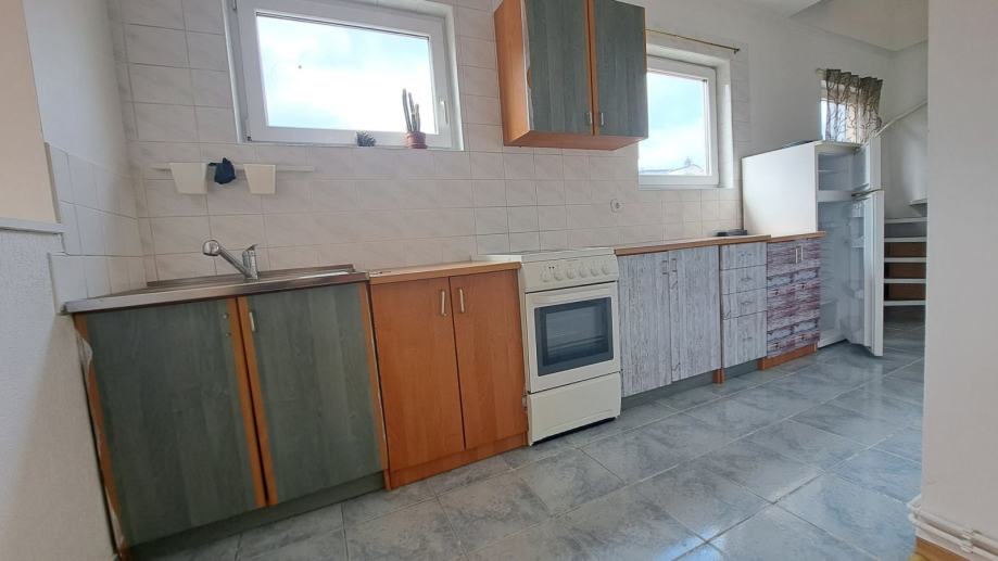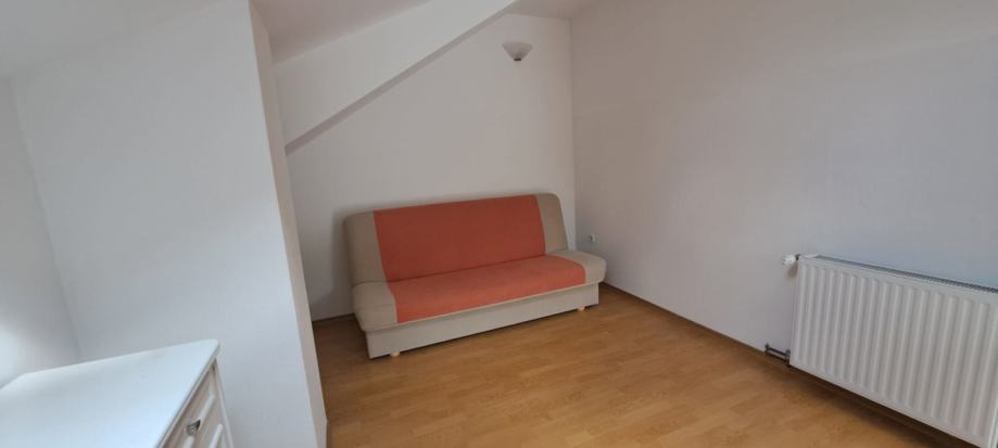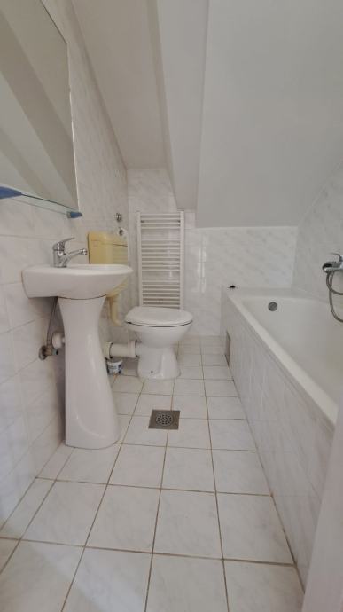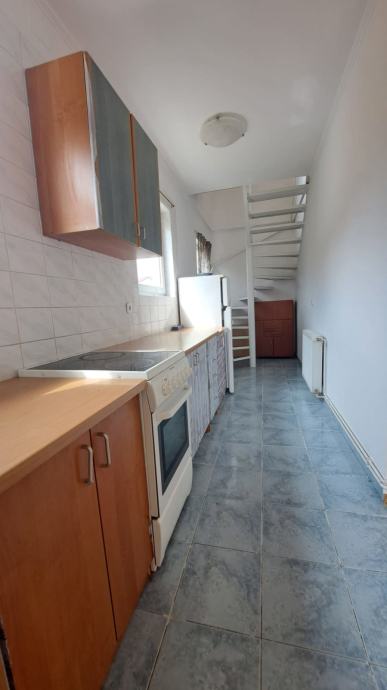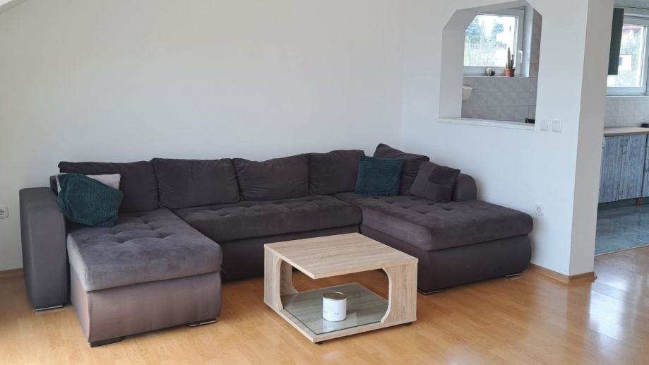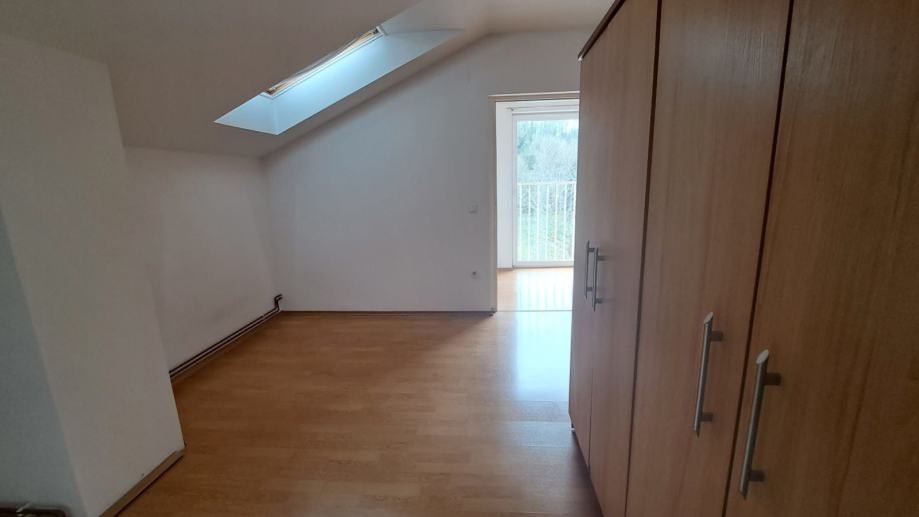 Prodaje se dvoetažni trosobni stan na mirnoj lokaciji, u manjoj stambenoj zgradi, Fraterščica. Stan se sastoji od hodnika, kuhinje sa stepeništem, prostranog dnevnog boravka i blagovaone te kupaonice na drugom katu, stubišta, dvije sobe i kupaonice u potkrovlju ukupne površine 74.23m2, te terase površine 11.31m2.