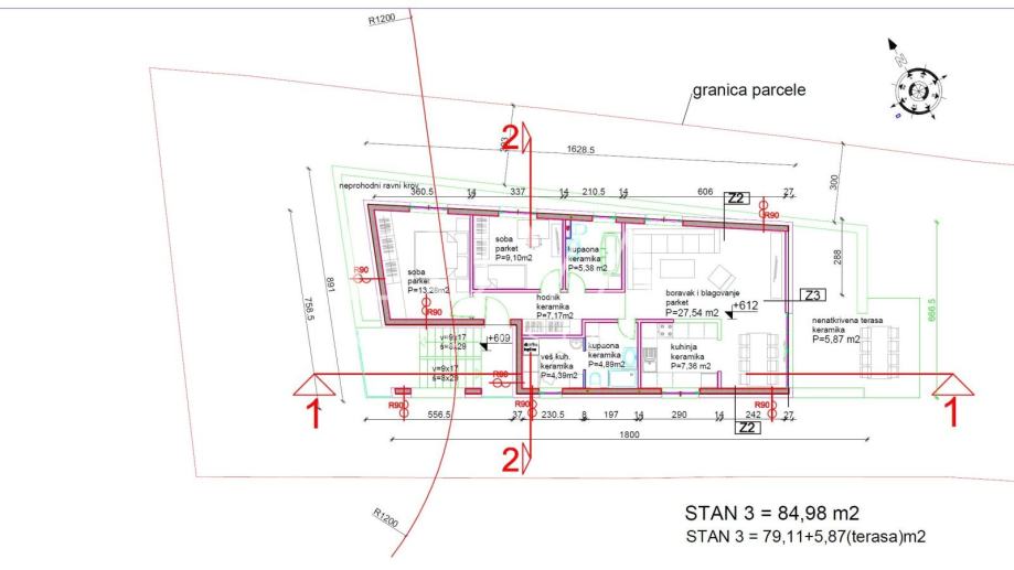 Prodaje se moderan 3-sobni stan u novogradnji, smješten na drugom katu manje stambene zgrade.