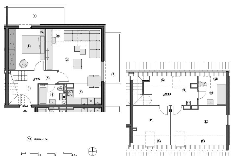 U mirnoj ulici u blizini svih sadržaja nudimo u novogradnji na drugom katu zgrade bez lifta, četverosoban dvoetažni stan u potkrovlju, orjentacija na sjever i istok. Stan se sastoji od ulaznog prostora sa stubištem, kuhinje, dnevnog boravka, tri spavaće sobe, hodnika, predprostora, dvije kupaonice i balkona