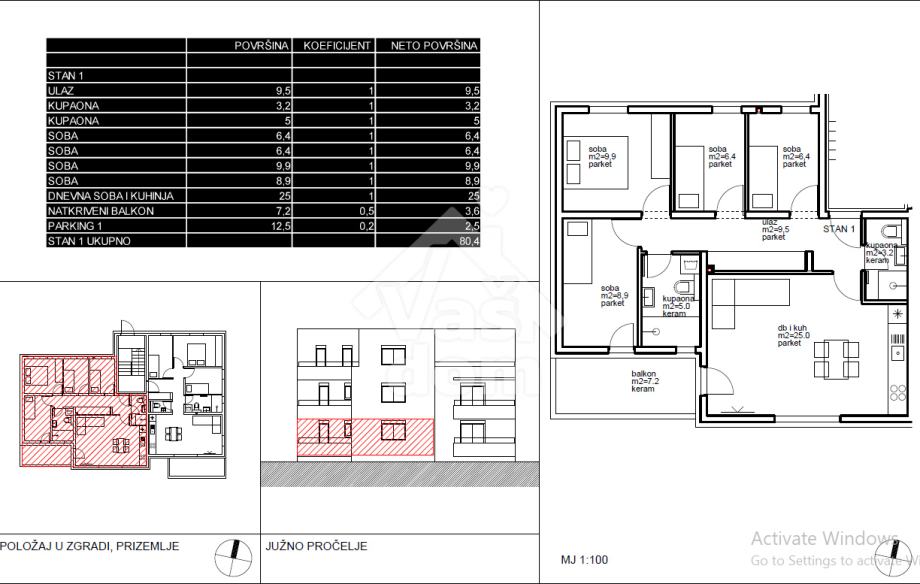 Stan je dvostrane orijentacije a sastoji se od ukupno četiri spavaće sobe ( dvije manje i dvije veće), dvije kupaonice , prostranog dnevnog boravaka s kuhinjom i prostranog balkona od 7,2 m2. Na lokaciji se grade dvije zgrade od po 6 stanova. U ponudi pored ovih stanova prodaju se još i stanovi sa dvije i tri spavaće sobe.