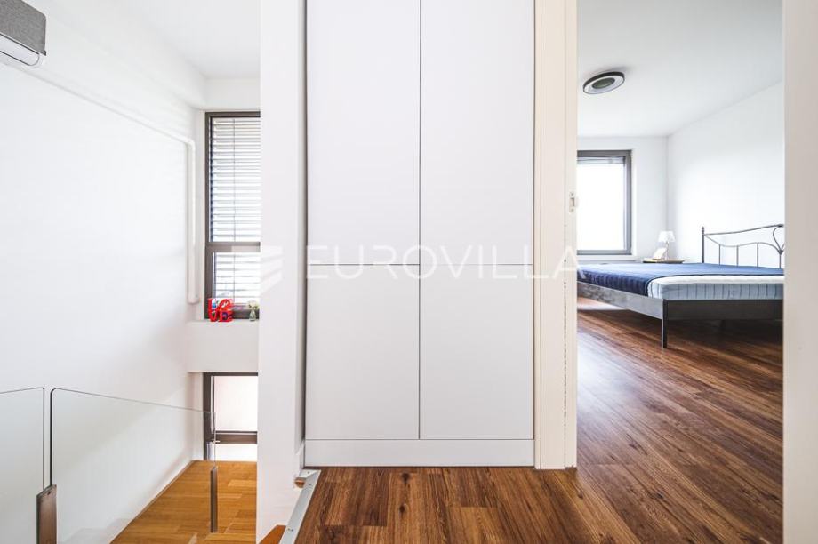 Novi Zagreb, Jadranska Avenija (Blato), modern four-bedroom terraced house, 180 m2 with a garden and four outdoor parking spaces. It is located in a quiet, intimate area surrounded by greenery and lakes, and is located close to the city. It is separated by a ramp from other facilities in the...