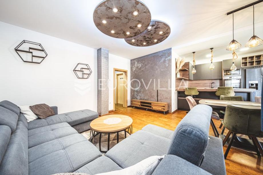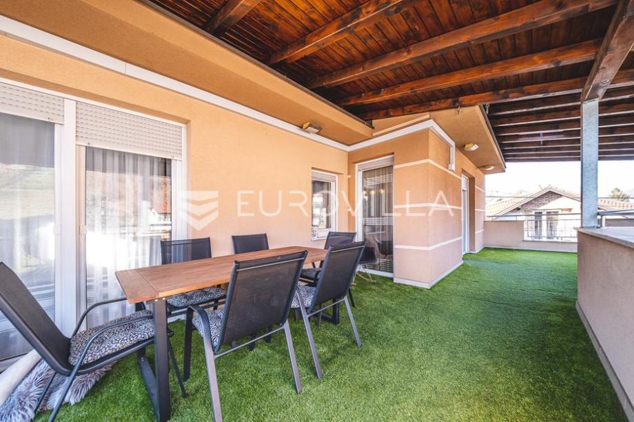 Zagreb, Gornja Dubrava, four-room apartment on the second floor of a modern residential building with a closed area of 81.19 m², covered terrace of 38 m² (GFA 19 m²), garage of 15 m² (GFA 11.25 m²), and an outdoor parking space of 12.5 m² (GFA 3.13 m²), total GFA 114 m².The apartment...