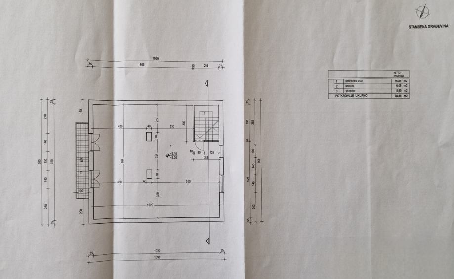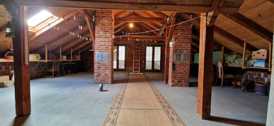 Potkrovlje je veličine 87 m2 s balkonom veličine 6 m2, neuređeno je te se može urediti prema potrebama novog vlasnika.
