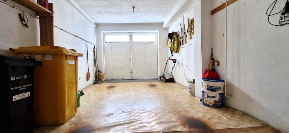 Prizemlje je veličine 125 – stambeni dio je veličine 78 m2 - i sastoji se od ulaznog hodnika, kuhinje s blagovaonom, dnevnog boravka s izlazom na balkon, spavaće sobe s koje se također izlazi na balkon, kupaonice s tuš kadom i WC-om, odvojenog WC-a i ostave. Prizemlje je povezano s garažom veličine 20 m2, iz koje se dolazi u ljetnu kuhinju i spremište s izlazom na stražnji dio dvorišta.