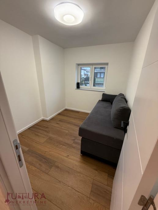 Oprema stana obuhvaća podno grijanje, klima uređaj, kvalitetnu PVC stolariju i mogućnost potpunog namještanja prema potrebama najmoprimca. Sve je novo adaptirano.
