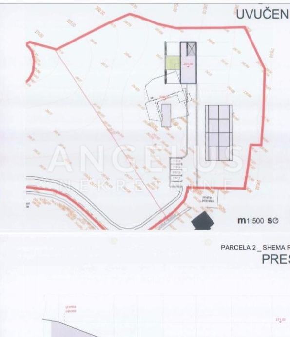 Parcela se proteže na 10.000m2, južne orjentacije sa starom kućom. Može se parcelizirati u dvije parcele po 5000m2 i sagraditi dva objekta po 400BRP. Parcela ima asfaltni prilaz i cijelu potrebnu infrastrukturu. Može se kupiti i pola zemljišta, znači 5000m2.