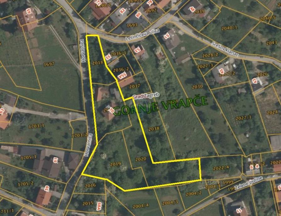 Prodaje se zemljište u ulici Horvatnica na spoju s Letinčićevom ulicom. Sastoji se od četiri čestice. Na građevinskom dijelu je mogućnost gradnje tri objekta od ukupno do 1000 GBP. Svaki s dvije nadzemne etaže, urbano pravilo 2.1. Na terenu je infrastruktura i objekti za uklanjanje. Pristup je s dvije ulice.