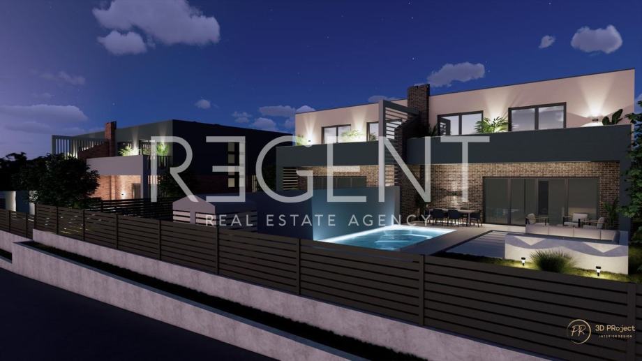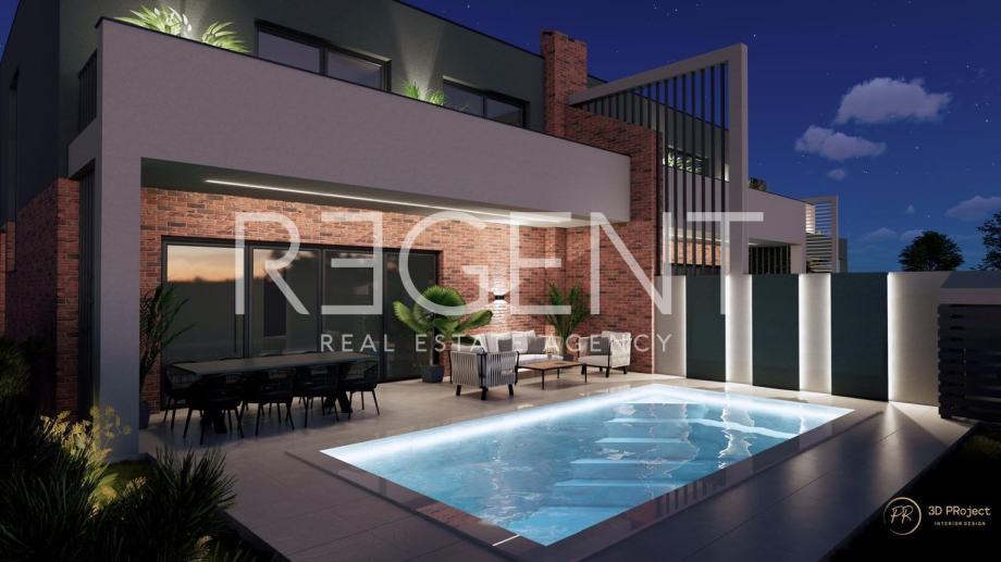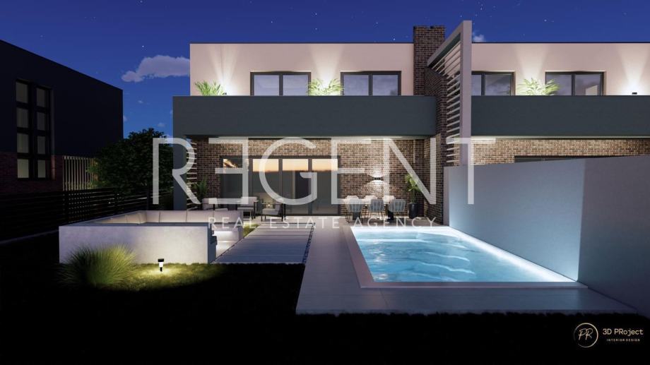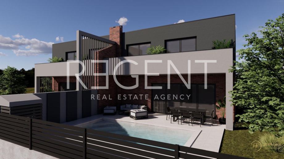 U mirnoj ulici na Gornjem Bukovcu u Zagrebu, u ponudi je najam luksuzna dvoetažna vila površine 233 m². Smještena u ekskluzivnom kompleksu od četiri moderno projektirane vile, svaka s vlastitim bazenom, garažom i dodatnim vanjskim parkirnim mjestom. Završetak izgradnje planiran je za kolovoz 2025.Ova prestižna mikrolokacija poznata je po zelenilu, privatnosti i izvrsnoj povezanosti s ostatkom grada. Idealna je za obitelji i pojedince koji žele miran životni stil uz vrhunski komfor i luksuz.Svaka vila prostire se na dvije etaže i nudi optimalan raspored prostorija. U prizemlju se nalazi prostrani dnevni boravak otvorenog koncepta, povezan s kuhinjom i blagovaonicom te izlazom na terasu i vrt s bazenom. Na katu se nalaze četiri prostrane spavaće sobe i dvije moderno uređene kupaonice.Interijer je osmišljen s naglaskom na eleganciju i funkcionalnost, uz vrhunsku završnu obradu. Vile su opremljene sustavima grijanja i hlađenja, PVC stolarijom, vrhunskim podovima i suvremenim kuhinjama.Vila uključuje privatni bazen, uređeni vrt s lounge zonom i sunčalištem, jedno garažno i jedno vanjsko parkirno mjesto.Režije do 300 eura su uključene u cijenu najma.Gornji Bukovac je jedno od najpoželjnijih zagrebačkih rezidencijalnih naselja – mirno, zeleno i odlično prometno povezano. U blizini se nalaze osnovna škola, vrtić, trgovine, gradski autobus i sve potrebne usluge za ugodan život. Brza povezanost s Maksimirom, centrom grada i izlazom prema Zračnoj luci dodatno povećava atraktivnost lokacije.Kontaktirajte nas za više informacija i razgledavanje.Za više informacija, kontaktirajte našeg agenta na brojeve telefona: