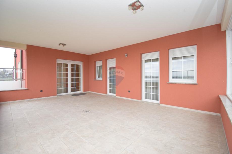 Stan na drugom katu: hodnik, kuhinja, blagovaonica, boravak, predprostor-garderoba, dvije spavaće sobe, dvije kupaonice, dvije terase i lođa.