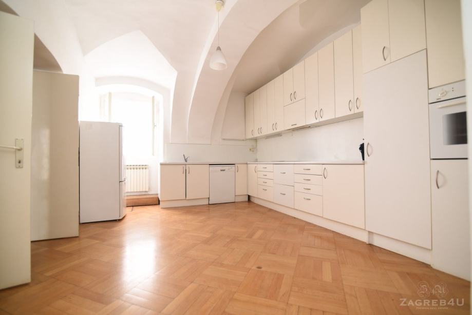 Molimo zvati agenta: Vedran + 385 95 5425 623, sales@zagreb4u.comProstran 4-sobni stan (250 m2) s podrumom, u obiteljskoj kući u srcu Gornjeg grada. Sastoji se od ulaznog hodnika, dnevnog boravka, kuhinje, tri spavaće sobe, dvije kupaonice i podrumske prostorije.Etažno plinsko grijanje, mogućnost telefonske i Internet linije.