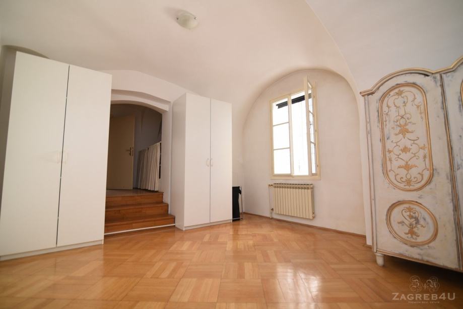 Spacious 4-room apartment (250 m2) with a basement, in a family house in the heart of Gornji grad.It consists of an entrance hall, living room, kitchen, three bedrooms, two bathrooms and basement room.Gas central heating, possibility of telephone and Internet line.