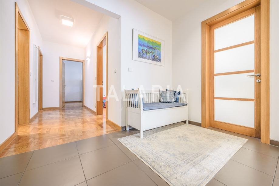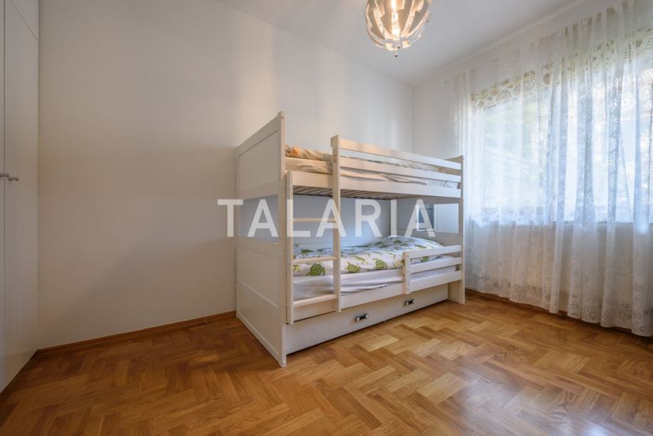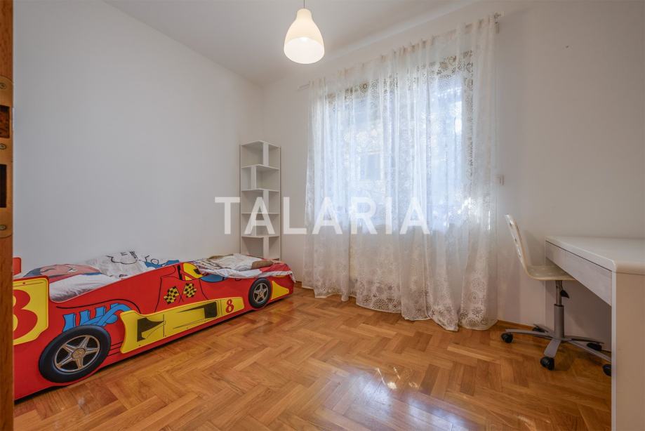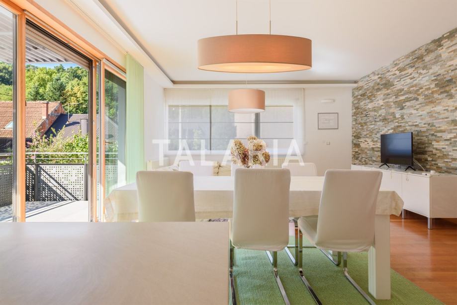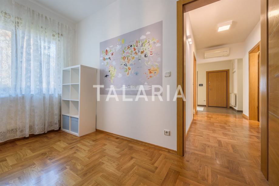 Lijep četverosoban stan na početku Gračana. Nalazi se u manjoj zgradi sa samo 3 stana. Pripadaju mu 2 parkirna mjesta te vrt. Sastoji se od ulaznog hodnika, dnevnog boravka s kuhinjom i blagavaonom koja ima izlaz na terasu i dvorište, 3 spavaće sobe, 2 kupaone te vešeraj. Izuzetno ugodan i uvučen od glavne ceste.