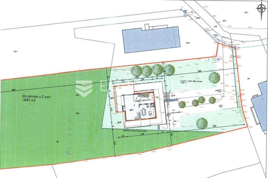 Zagreb, Gračani, novoprojektirana stambena građevina nalazi se na površini od 5418 m2 od čega je 1764 m2 u građevnom dijelu zemljišta (namjena S), a ostalo u zoni zaštitnog zelenila.Na predmetnoj parceli nalazi se stambena zgrada tlocrtne površine 52 m2, za koja posjeduje uporabnu...