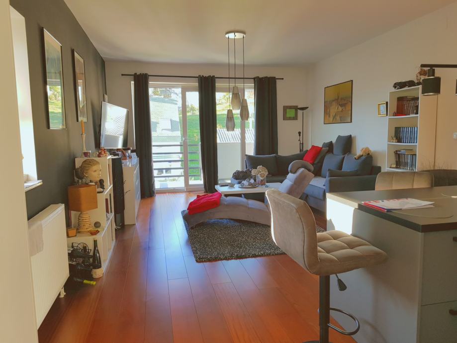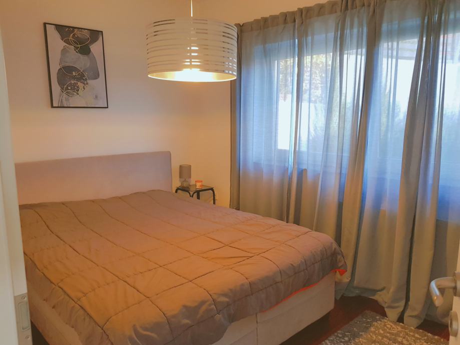 U mirnoj ulici okružen zelenilom i šumom na prodaju se nudi prekrasan dvosoban stan sa vrtom. Sastoji se od predsoblja, garderobe, komotne kupaonice, spavaće sobe te open space dnevnog boravka sa izlazom na vanjsku terasu. Površina stana je 60,30 m2 + terasa 5,40 m2 te vrt 33,60 m2. Stan je prozračan, uredan i ugodan sa puno prirodnog svijetla, odličnog rasporeda te ne iziskuje nikakva ulaganja.