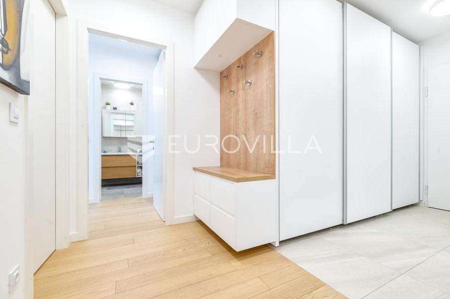 Heinzelova, novogradnja, VMD, luksuzan trosoban stan zatvorene površine 76,53m2 sa loggiom, garažom te parkirnim garažnim mjestom. Ukupne NKP 107,52m2. U potpunosti namješten dizajnerskim namještajem.
