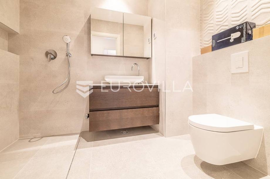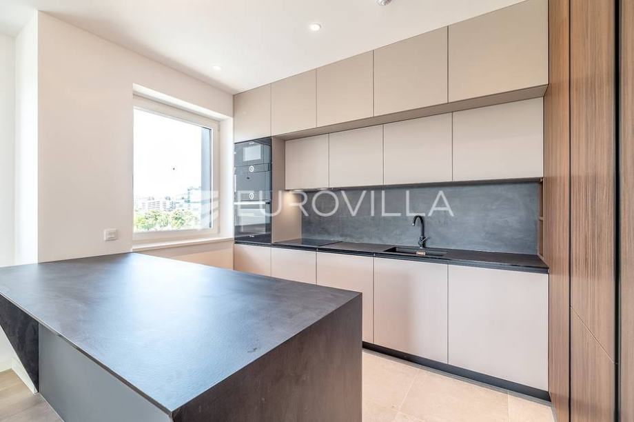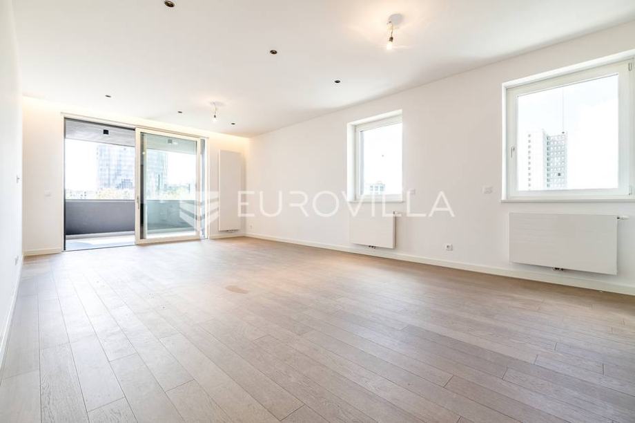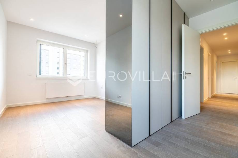 Zagreb, Heinzelova VMD, peterosoban stan za najam u novogradnji zatvorene površine 127 m2 s dvjema pripadajućim loggiama (NKP 16 m2) te tri garažna parkirna mjesta (NKP 21 m2). Ukupno obračunski 167 m2.
