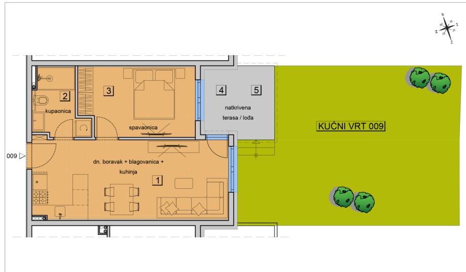 Sloboština, Otok, Green Island Residence, moderno i ekskluzivno stambeno naselje, novogradnja visokog standarda, koja spaja suvremeni dizajn i visoku energetsku učinkovitost. Stan S48 – dvosoban u prizemlju, zatvorene površine 42,40 m² s natkrivenom terasom 4,20 m2 (2,10), loggiom 3,25 m2 (2,43) i vrtom 51,22 m2 (5,12), ukupno NKP 52,05 m2. Stanu pripada garažno parking mjesto GPM 48 površine 13,90 m2 (6,95) te spremište SP 48 u podrumu površine 5,10 m2 (2,55) te postoji mogućnost kupnje dodatnog parkirnog mjesta i spremišta. Ukupno obračunski NKP 61,55 m². Sastoji se od otvorenog dnevnog boravka s kuhinjom i blagovaonicom, spavaće sobe, kupaonice, loggie, natkrivene terase i vrta. Oprema: Podno grijanje - ITPS sustav s centralnom pripremom tople vode Ugrađeni klima uređaji PVC stolarija - troslojno IZO staklo, električni podizači roleta i komarnici Visokokvalitetni parketi i keramika 1. klase renomiranih proizvođača Premium sanitarije i armature Video portafon Solarni paneli na krovu za veću energetsku učinkovitost Sigurnosna protuprovalna vrata LED rasvjeta u stubištima i zajedničkim prostorima Balkonske ograde modernog dizajna Energetski certifikat A+ Projekt Green Island Residence nudi moderan način stanovanja u zatvorenom tipu naselja koje se sastoji od 2 stambene zgrade po 79 stanova, dječjeg igrališta, 160 garažnih parkirnih mjesta, 50 vanjskih parkirnih mjesta i 160 spremišta. Nalazi se na odlično povezanoj lokaciji u blizini vrtića, škola, doma zdravlja, trgovina i javnog prijevoza. Shopping centar Avenue Mall i park Bundek na nekoliko minuta udaljenosti. Brza povezanost s centrom grada, zračnom lukom i autocestom. Predviđeno useljenje: proljeće 2027 Kupci su oslobođeni plaćanja poreza na nekretnine Mogućnost kupnje putem zelenog kredita. Sve dodatne informacije na upit....