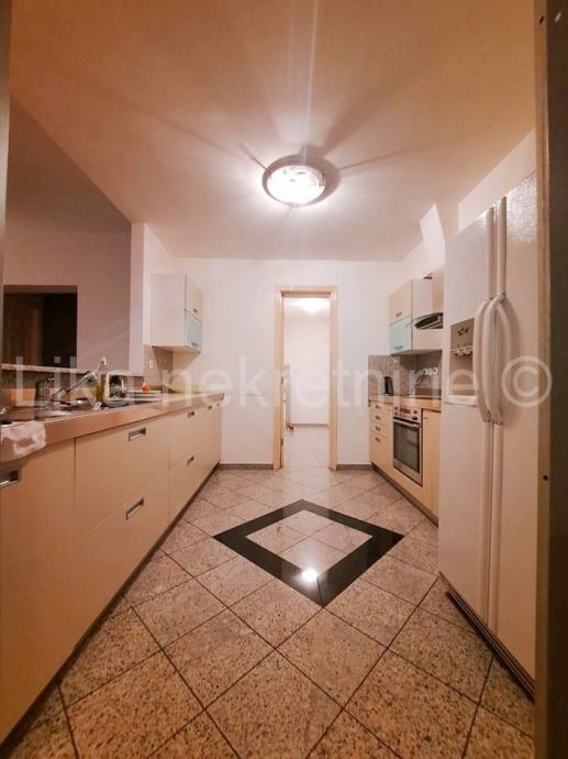 Ima 137m2, a sastoji se od ulaznog prostora, open space dnevnog boravka sa kompletno opremljenom kuhinjom i blagavaonicom, glavne spavaće sobe povezane sa kupaonicom, dvije manje sobe, vešeraja i WC-a.