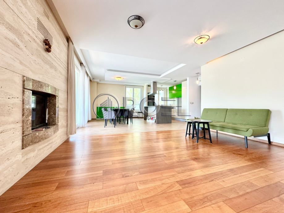 Jarun, prekrasno uređen i djelomično namješten dvoetažan peterosoban stan zatvorene netto korisne površine 270 m2 u visokom prizemlju novije gradnje.