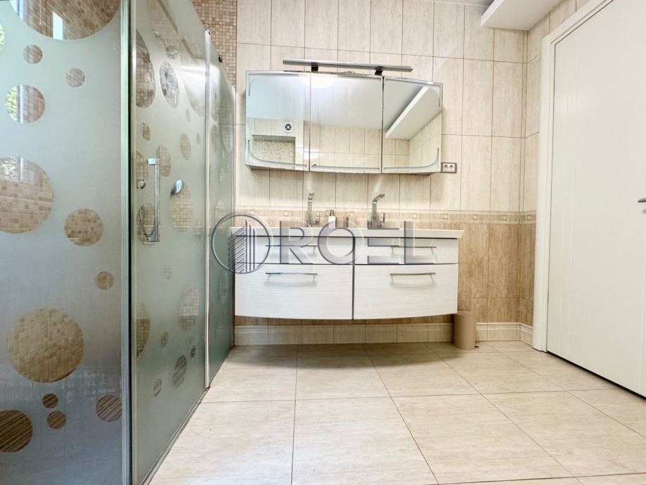 Sastoji se od prostranog dnevnog boravka s blagovaonicom i opremljenom kuhinjom, četiri spavaće sobe s ugradbenim ormarima, dvije kupaonice, toaleta te natkrivene terase s velikim vrtom. Donja etaža se sastoji od spremišta, kupaonice, manje sobice te open space prostora koji se može pretvorit u dnevni boravak, spavaću sobu ili gym.