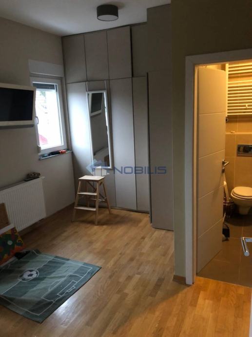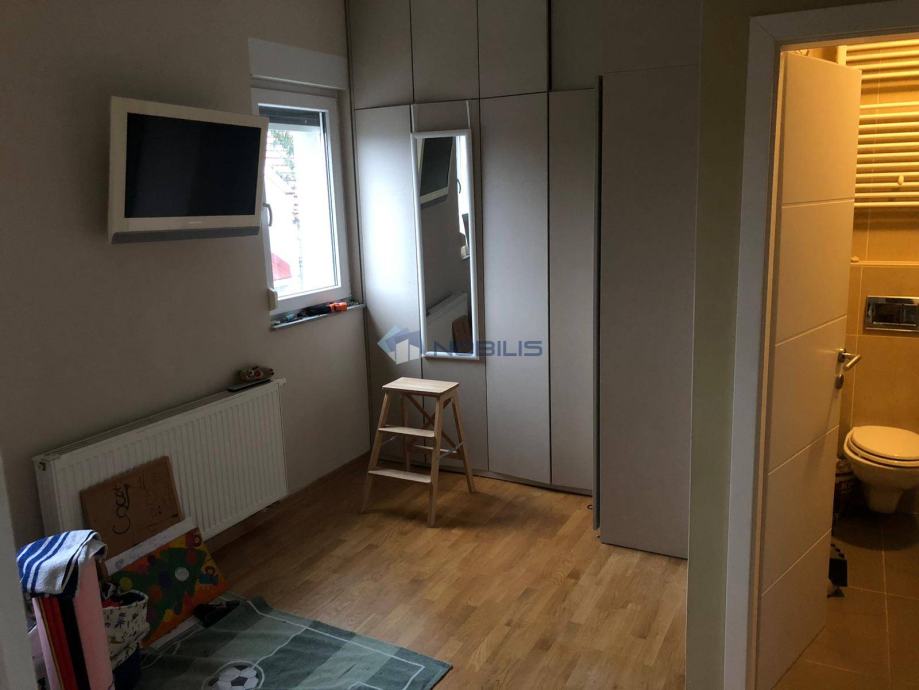 Gornja etaža se sastoji od dvije spavaće sobe, jedne manje sa izlaskom na prekrasnu terasu sa pogledom na vrt koji se nalazi u dvorištu zgrade. U sklopu velike spavaće sobe nalazi se kupaonica sa WC-om.