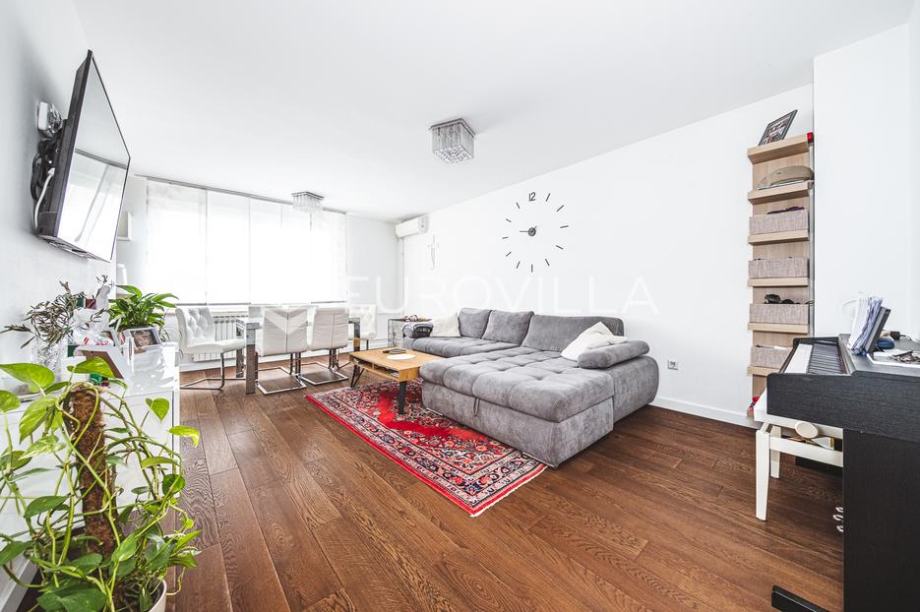 Zagreb, Jarun, modern two-story apartment 74.30 m2, located on the ground floor of a residential building built in 2008.The apartment is rented fully furnished, and consists of an entrance hall, 2 bedrooms, guest toilet, bathroom, living room with kitchen and dining room, and loggia.The apartment...