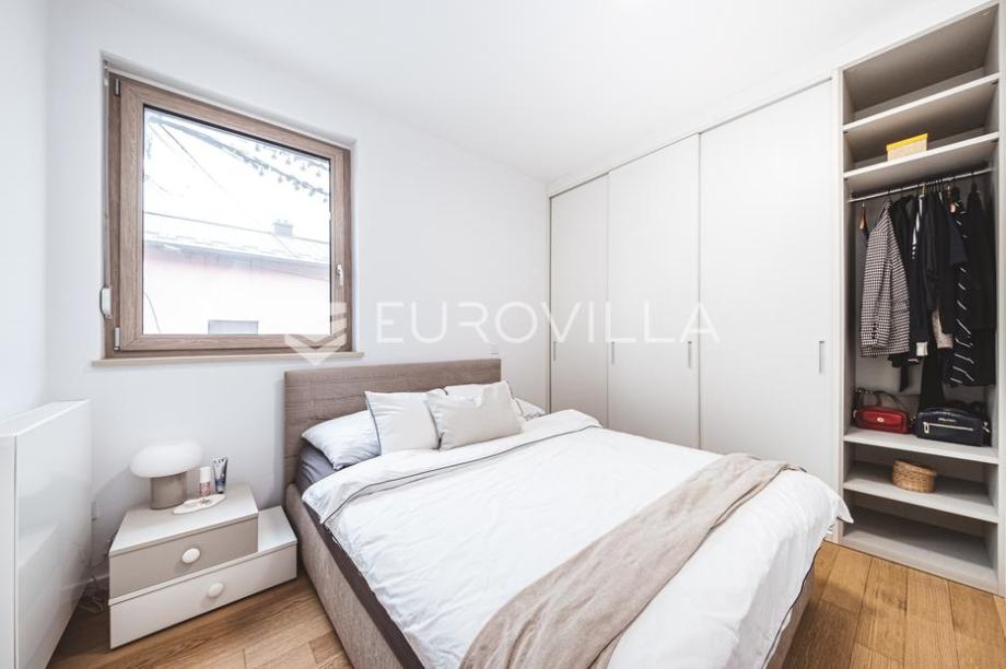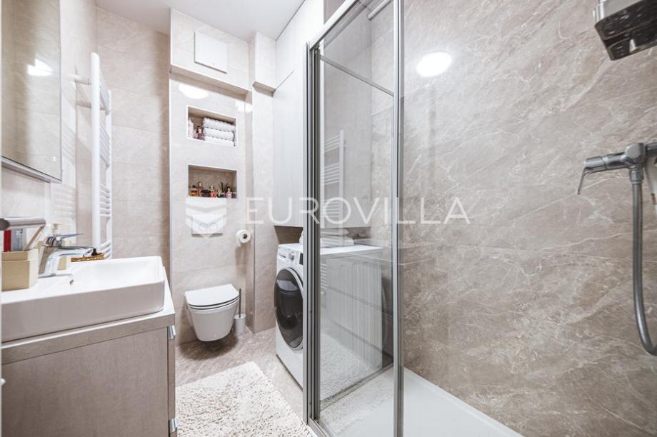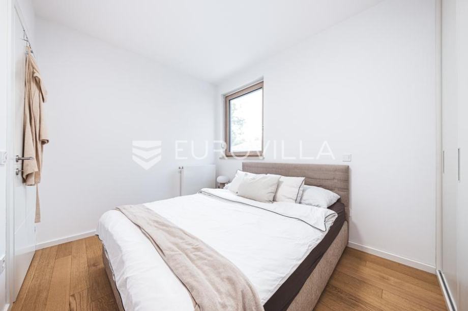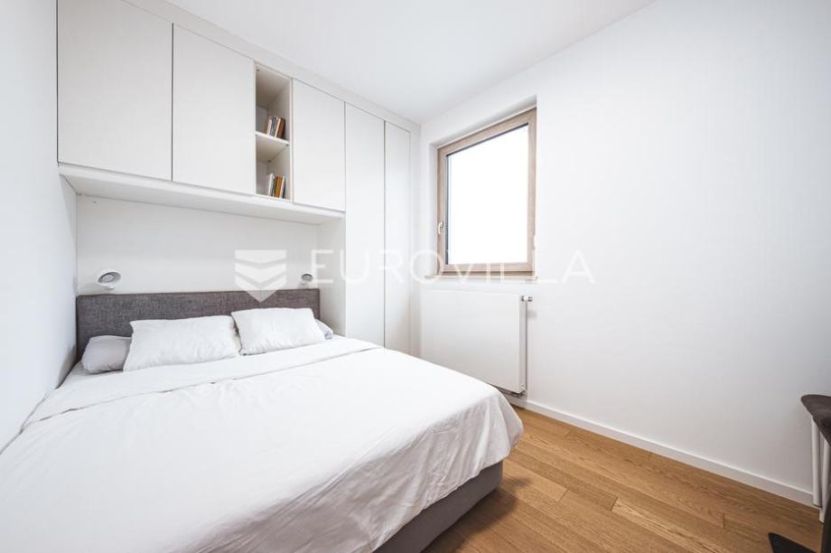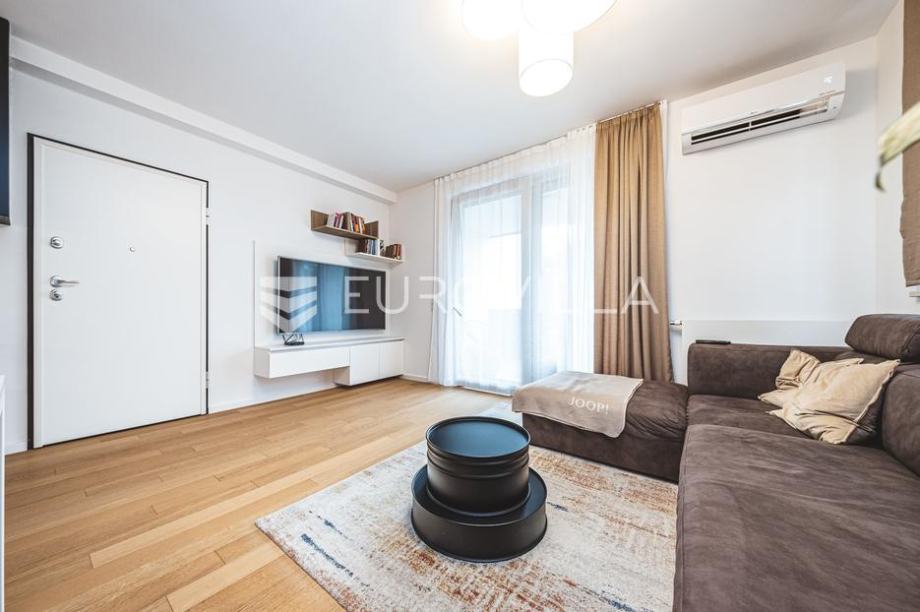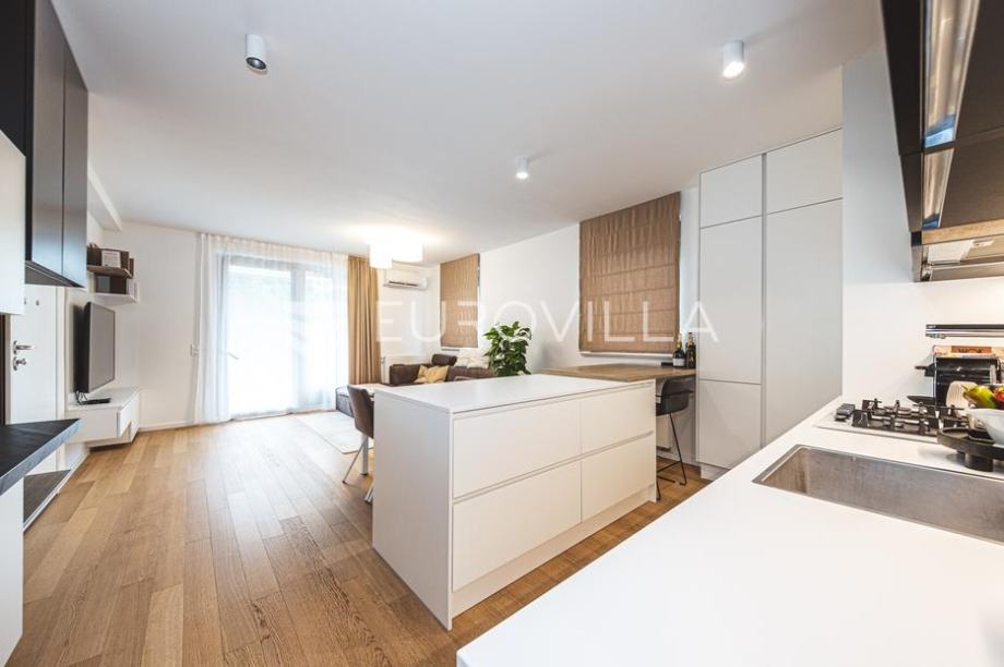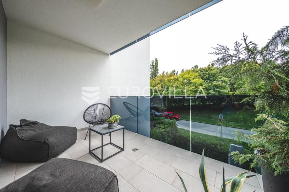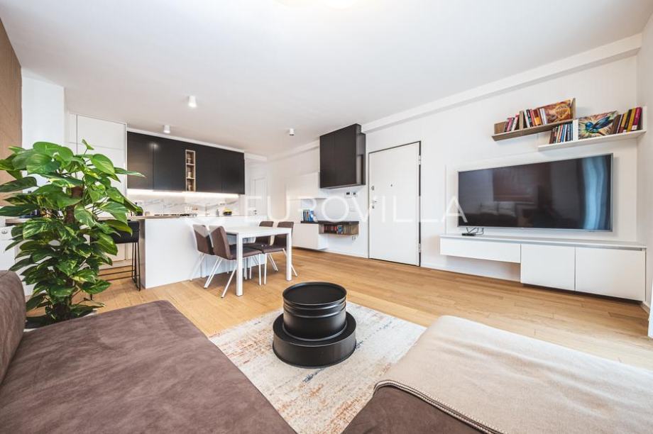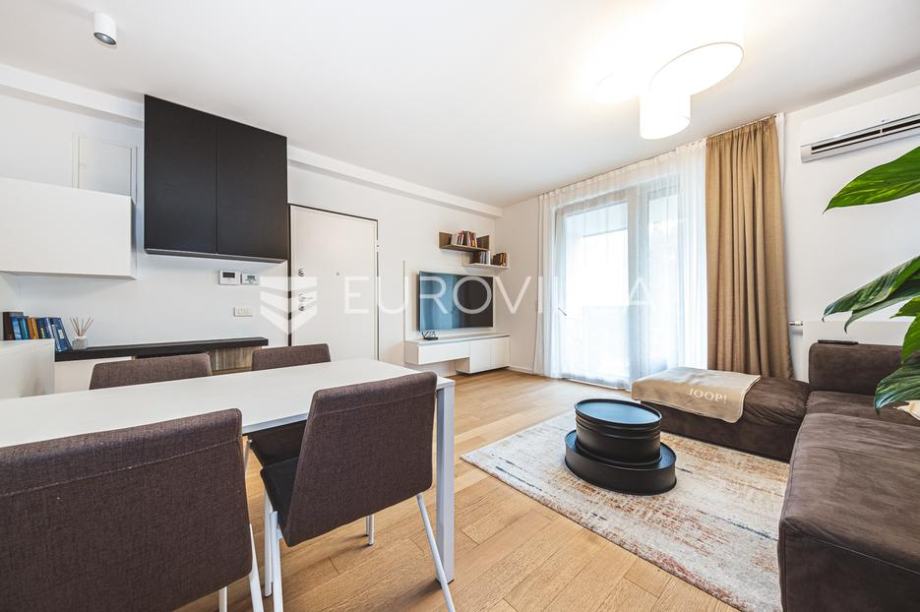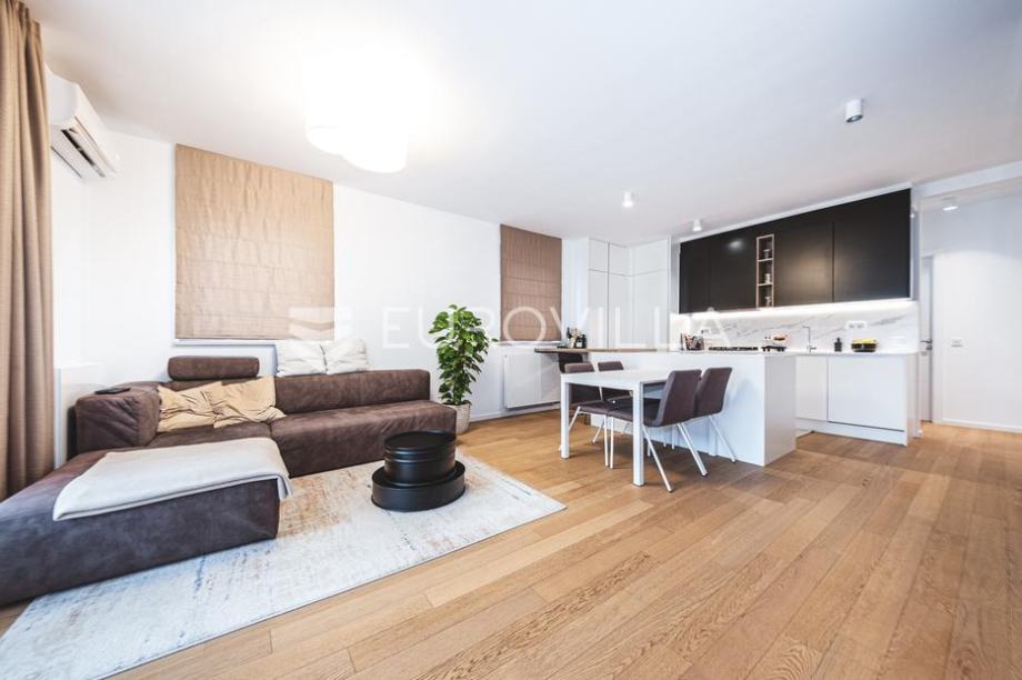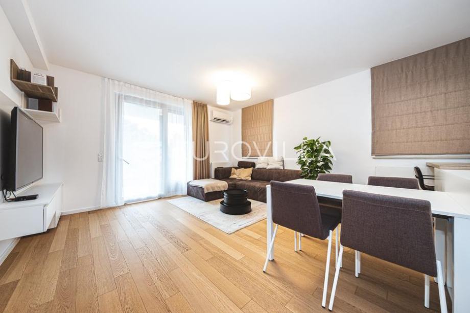 Jarun, beautifully decorated and fully furnished two-room apartment with a closed area of 58 m2 on the 1st floor of a new building (2019). It consists of a spacious living room with a dining room and an equipped kitchen, 2 bedrooms with built-in wardrobes, a bathroom with a shower and a covered...