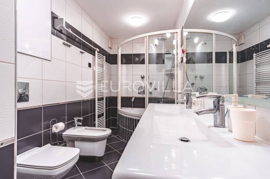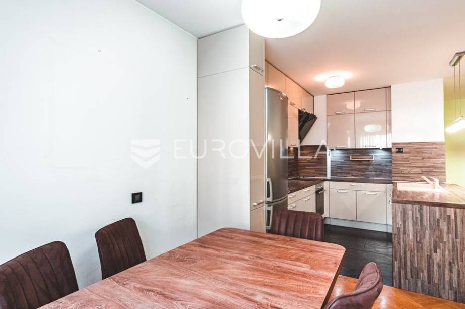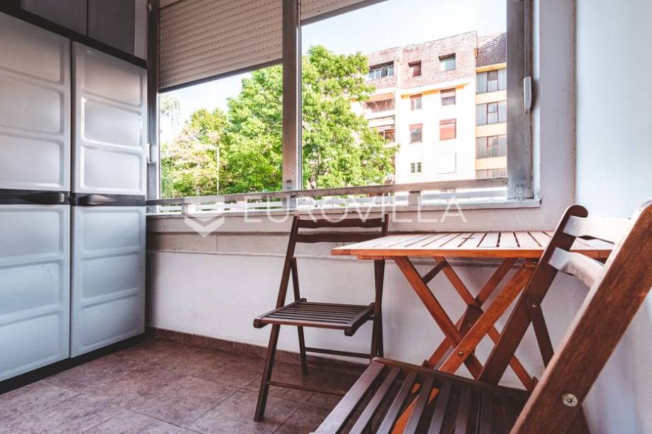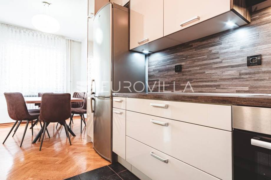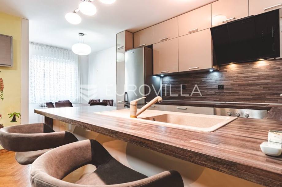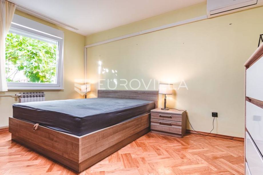 Jarun, a beautiful three-room fully furnished apartment of 80 m2 on the upper ground floor of a residential building. It consists of a living room connected to the dining room and kitchen, two bedrooms (one with a double bed, the other is empty and can be furnished by agreement), a bathroom with a...