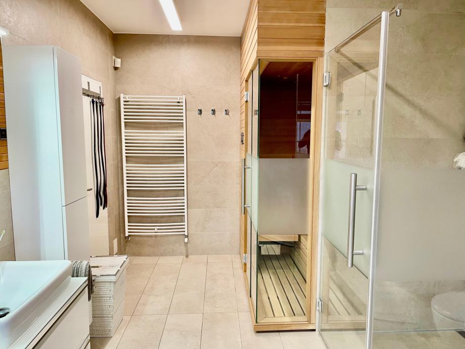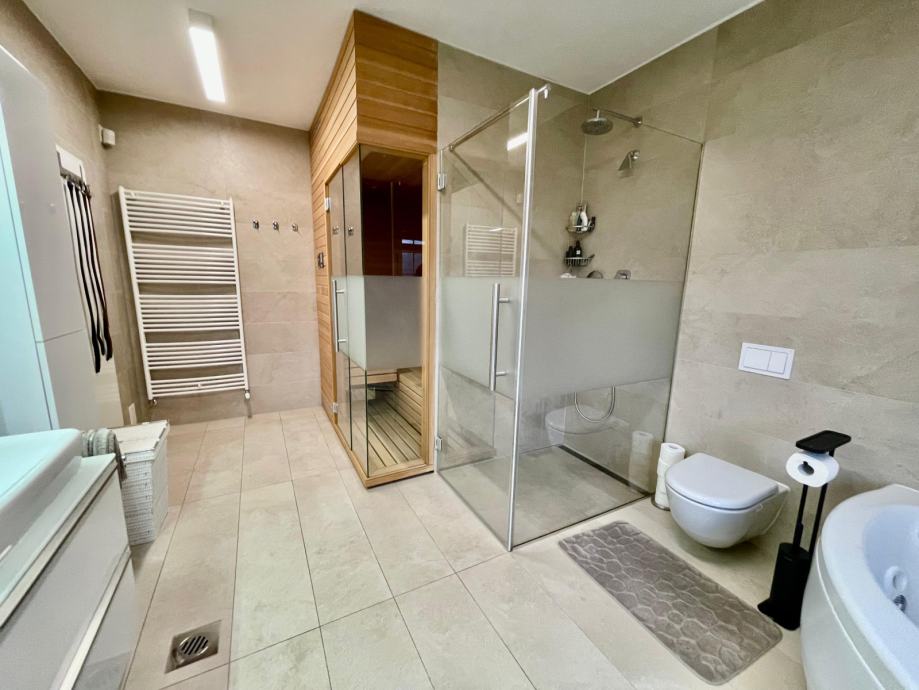 Treća etaža: sastoji se od tri klimatizirane spavaće sobe, master kupaonice sa saunom i jacuzzijem.