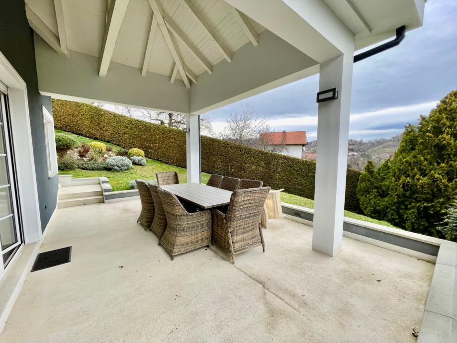 Zagreb, Jelekovići, na spektakularnoj poziciji i i parceli od 1786 m2 se smjestila ova luksuzna vila okružena prirodom, orijentirana na sve 4 strane svijeta u okruženju koje pruža potpuni mir s panoramskim pogledom na okolicu i obronke, a opet na izvrsnoj lokaciji u blizini centra Markuševec.