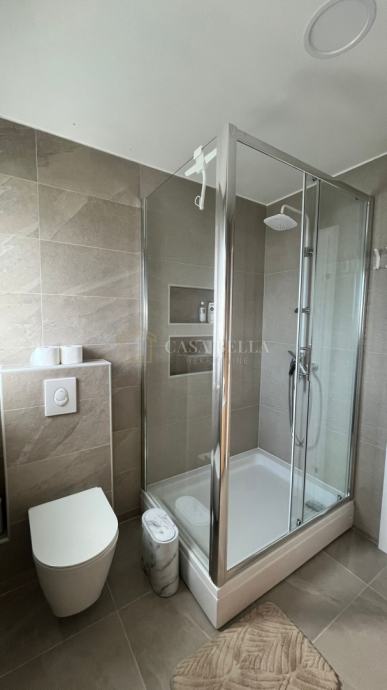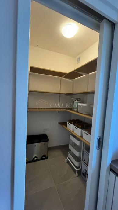 Sastoji se od velikog dnevnog boravka, dvije spavaće sobe, kupaonice s tušem, gostinjskog toaleta s perilicom i sušilicom rublja, potpuno opremljene kuhinje s perilicom suđa te smočnice.