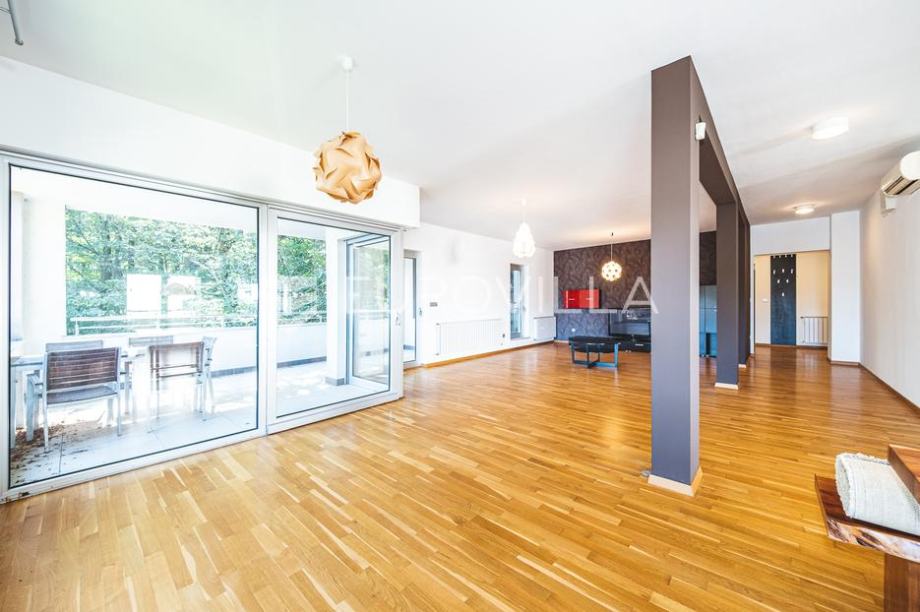Jelenovac, ulica Ante Šercera, prostran četverosoban stan od 197,95 m2 u prizemlju zgrade novije gradnje s liftom.Sastoji se od ulaznog hodnika, prostranog open space dnevnog boravka s izlazom na terasu, kuhinje s blagovaonicom i izlazom na balkon, kupaonice, master spavaće sobe s walk in...