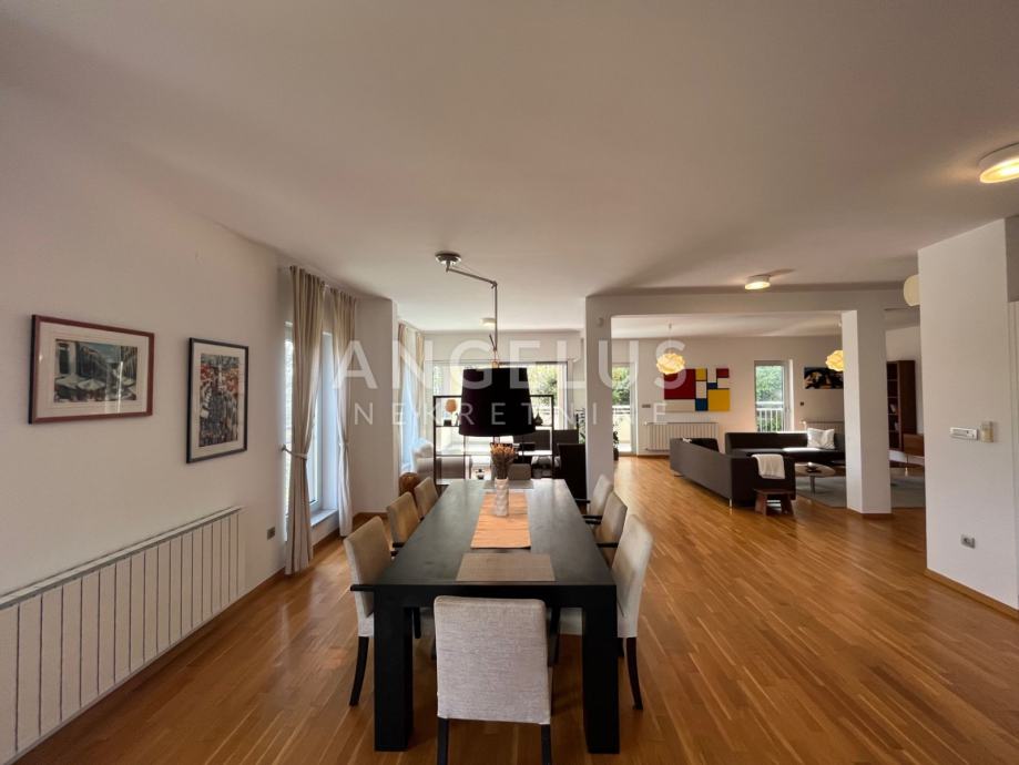Stan površine 200 m2 nalazi se na Jelenovcu, 3 km od centra grada, 4 km od britanske škole Bright horizons, 7 km od francusko-njemačke škole Eurocampus, 4 km od internacionalne škole Matija Gubec, 6 km od Američke internacionalne škole. Javni prijevoz dostupan autobusom.