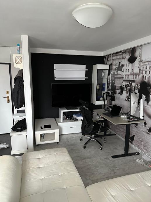 Zagreb, Knežija, prodaje se jednosoban stan na 5. katu kvalitetno građene stambene zgrade s liftom. Stan ukupne NKP 37,70 m2 se sastoji od ulaznog hodnika, dnevnog boravka, kuhinje, kupaonice te loggie. Stan se prodaje kompletno namješten i opremljen. U vlasničkom listu je upisano 28.70 m2, dok je Rješenjem o izvedenom stanju zatvaranjem terase dobiveno još 8 m2 stambene površine. Lokacija je odlična, u blizini svih bitnih sadržaja za život. Vlasništvo je uredno, moguća je kupnja na kredit.