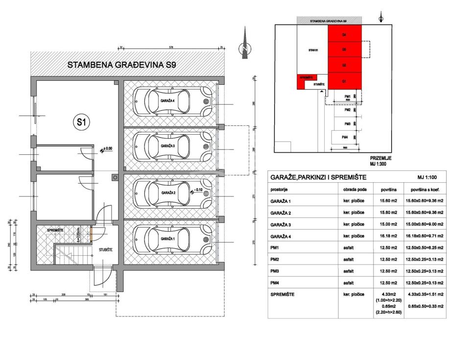 Mogućnost kupnje jednostruke ili dvostruke garaže uz stan (jedna je površine 15m2 - 15,60m2 ili 16,18m2).