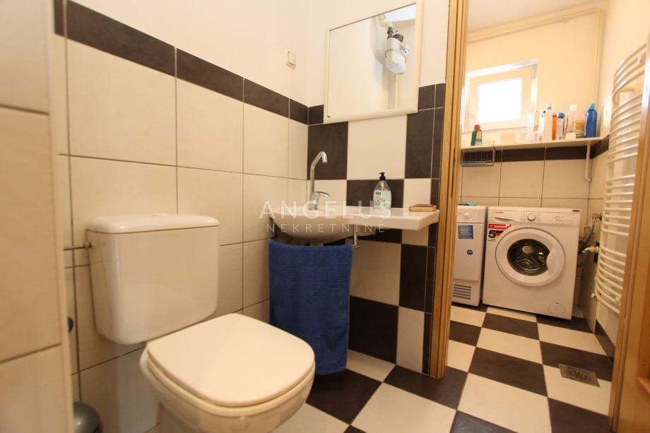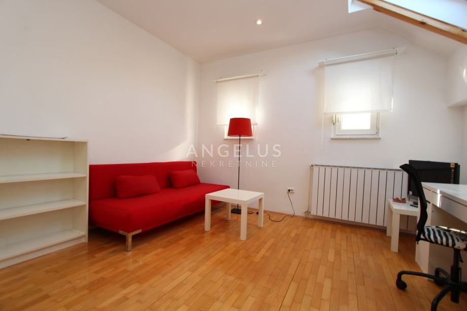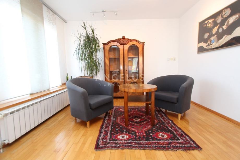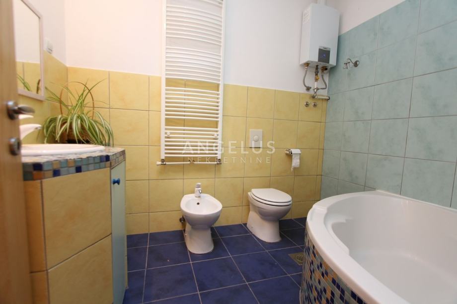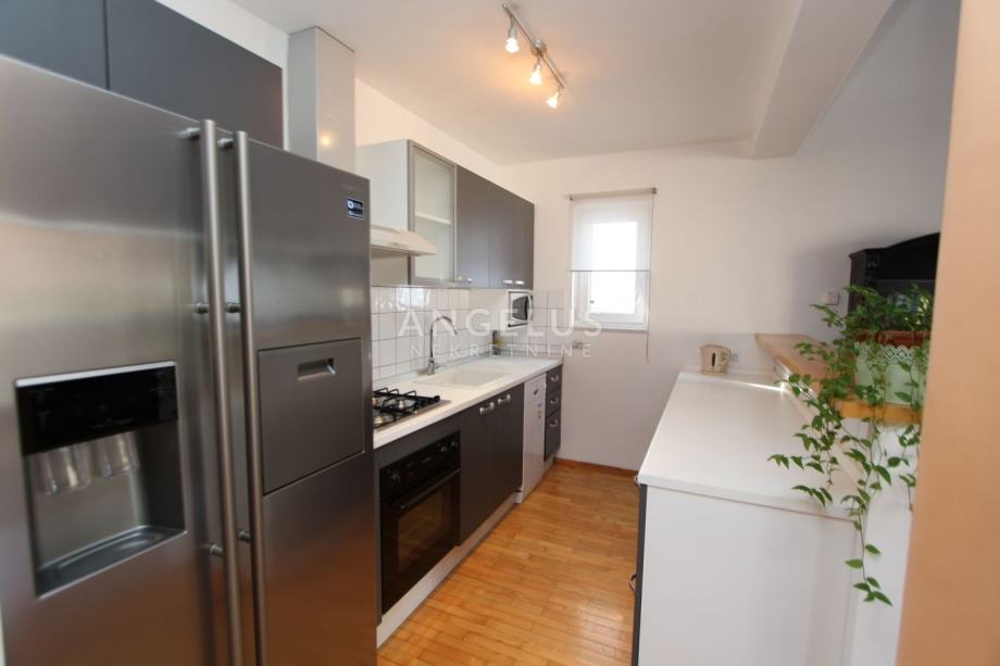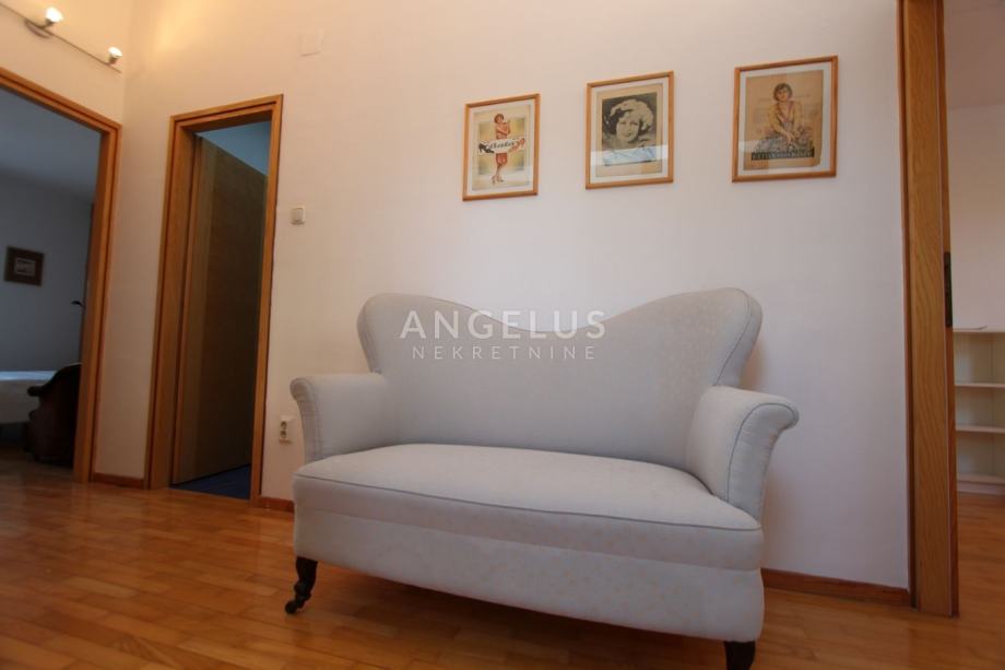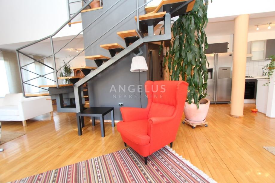Nalazi se na 2. katu manje zgrade bez lifta, a prostire se na 2 etaže. Na donjoj se nalazi kuhinja povezana sa blagovaonicom i prostranim dnevnim boravkom sa kaminom, ostava, toalet i praonica. Na gornjoj etaži su dvije spavaće sobe i 2 kupaonice. Namješten je, klimatiziran i ima parkirno mjesto u dvorištu.