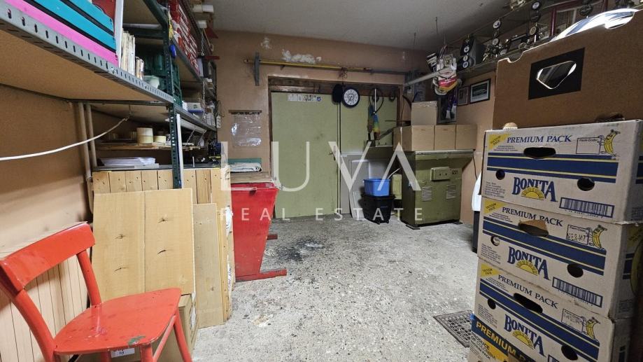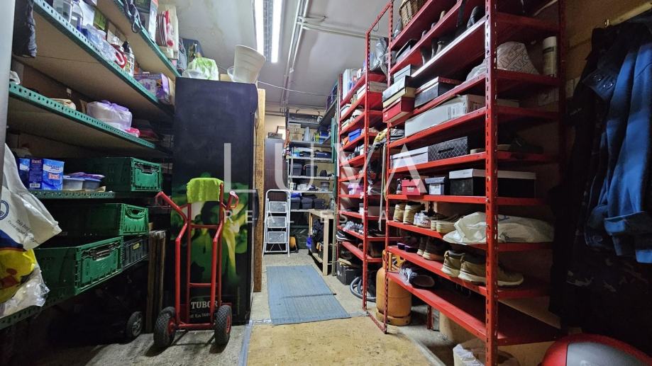 U prizemlju se nalazi prostrana blagovaonica, kuhinja koja je obnovljena 2021. godine, kupaonica, garaža za dva automobila, te dodatno spremište.