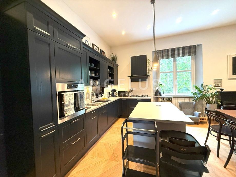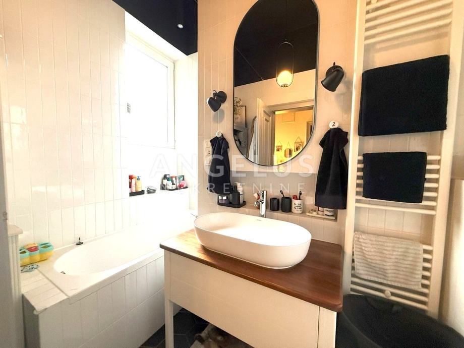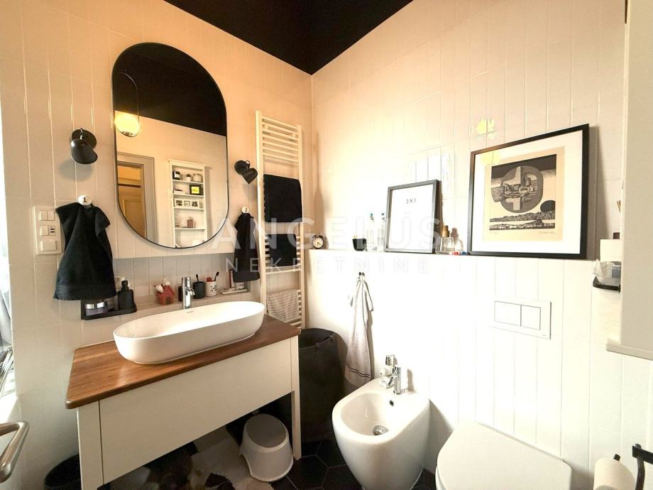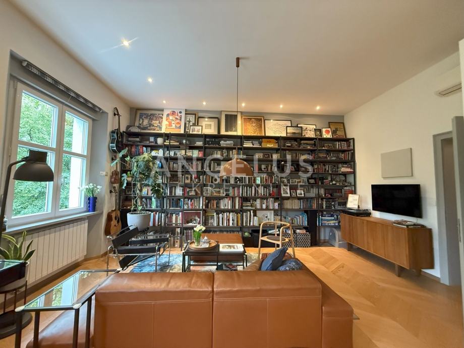 OPIS: Ovaj predivan dizajnerski stan idealno osmišljen i projektiran do najsitnijeg detalja, nalazi se na trećem katu bez lifta i sastoji se od ulaznog hodnika, velikog dnevnog boravka s kuhinjom i pogledom prema parku. Jedna velika spavaća soba i jedna manja, kupaonica s podnim grijanjem, te ostava i vešeraj na kojem je galerija gdje se nalazi radna soba. Stan je temeljito renoviran s luksuznom opremom. Iznad stana je zajednički tavanski prostor.