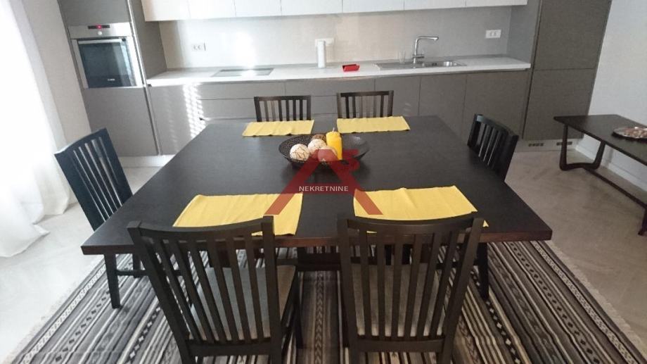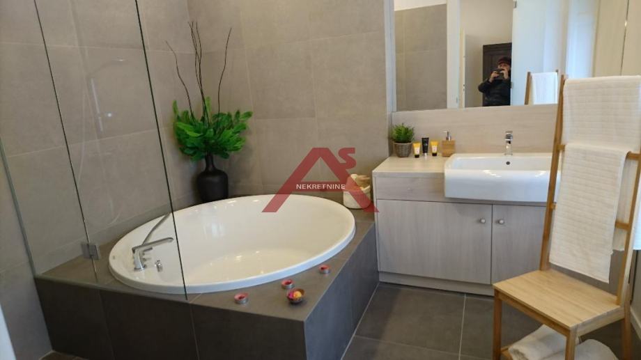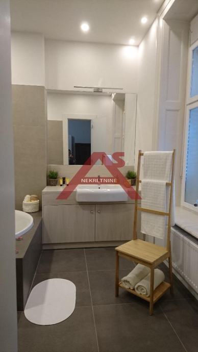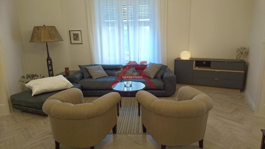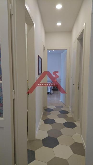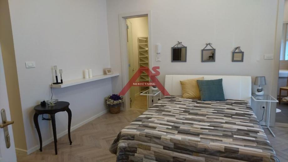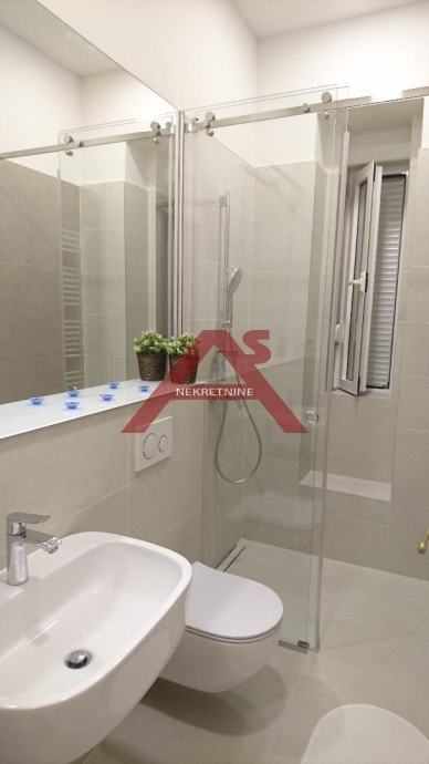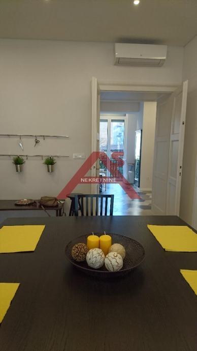 Novouređen stan u mirnoj ulici u centru grada. Stan je luksuzno opremljen i potpuno namješten. Vrlo svijetao, sastoji se od ulaznog prostora, dnevnog boravka, blagovaonice s kuhinjom, dvije spavaće sobe, walk in closet, velika kupaona sa okruglom kadom i velikim tušem, manja samo sa tušem , a ima i dodatni wc sa vešerajom.. Iz gostinske spavaće sobe izlazi se na balkon sa pogledom na dvorište. Info na mob. 091361 5081
