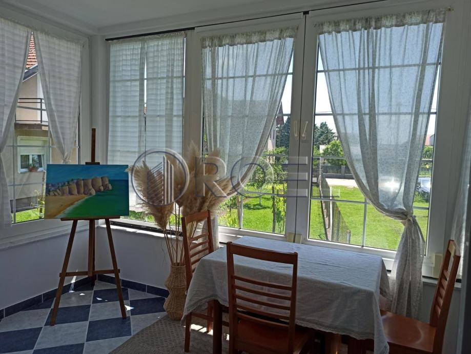 U suterenu se nalazi velika višenamjenska prostorija s vlastitim izlazom u dvorište koja se trenutno koristi kao ured i atelje, kupaonica, spremište i garaža, a zahvaljujući postojećim priključcima za kuhinju prostor se može jednostavno pretvoriti u garsonijeru. Odvojeno, s posebnim ulazom, smještena je radiona u kojoj se nalazi hidrofor, budući da kuća ima i vlastiti bunar. Prizemlje nudi izuzetno ugodan i funkcionalan raspored s ulaznim hodnikom, ugradbenom garderobom, kupaonicom, jednom sobom te prostranim open space dnevnim boravkom s blagovaonicom i potpuno opremljenom kuhinjom sa šankom. Posebna vrijednost ovog dijela kuće je predivan južno orijentiran zimski vrt u potpunosti ostakljen, iz kojeg stepenice vode u dvorište s terasom, vanjskim roštiljem i zdenčekom s vodom iz bunara, dok se u dnevnom boravku nalazi i zatvoreni kamin koji dodatno doprinosi toplini doma.